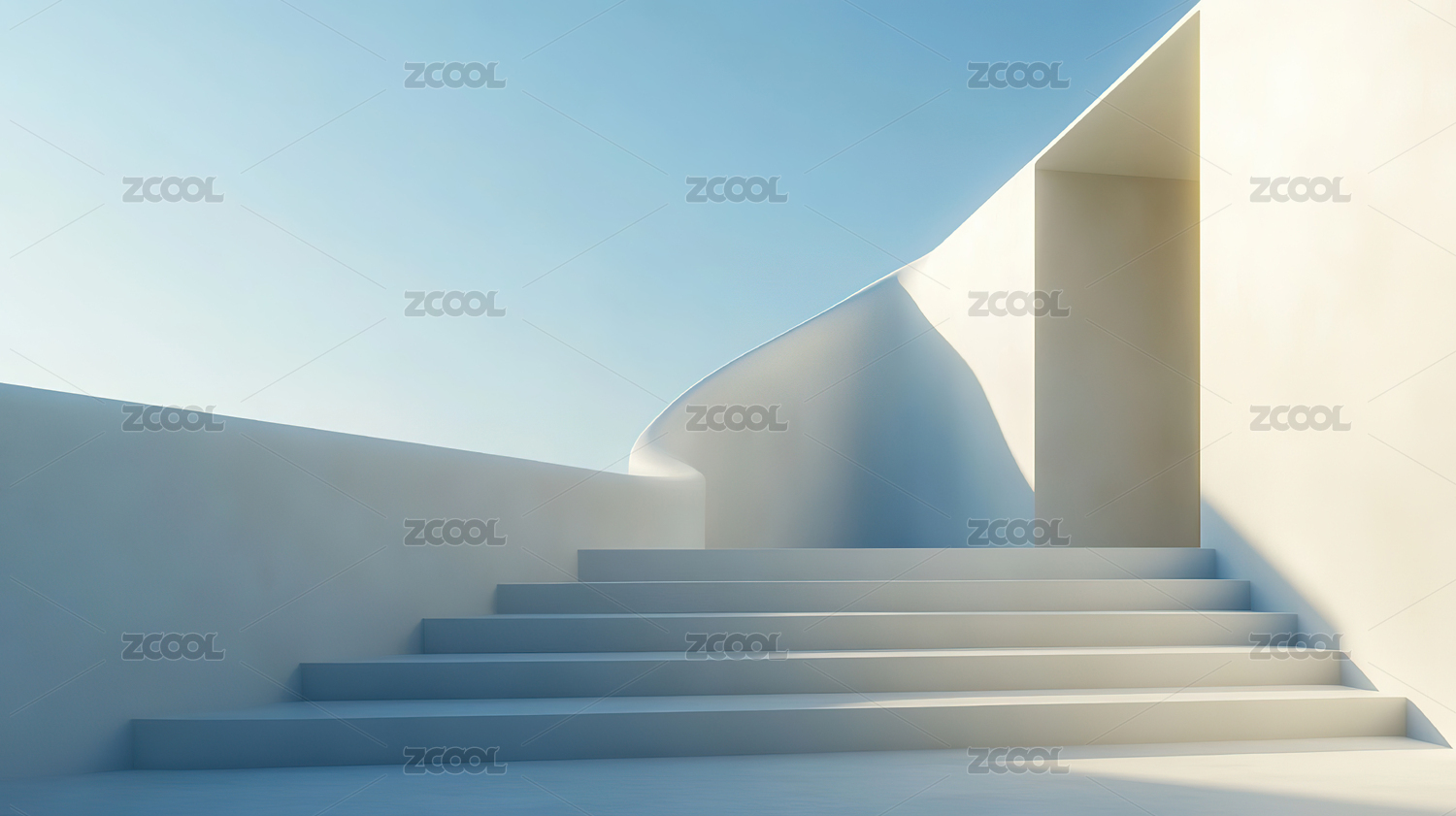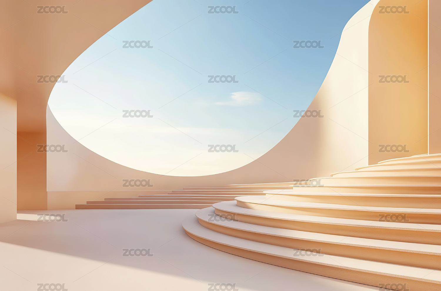 3D,极简,抽象,建筑,场景,背景,插画,科技感,未来感,夕阳