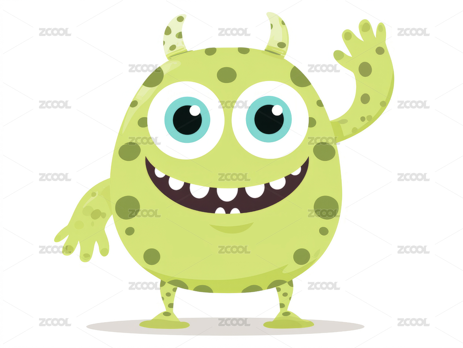 卡通可爱绿色小怪兽插画
