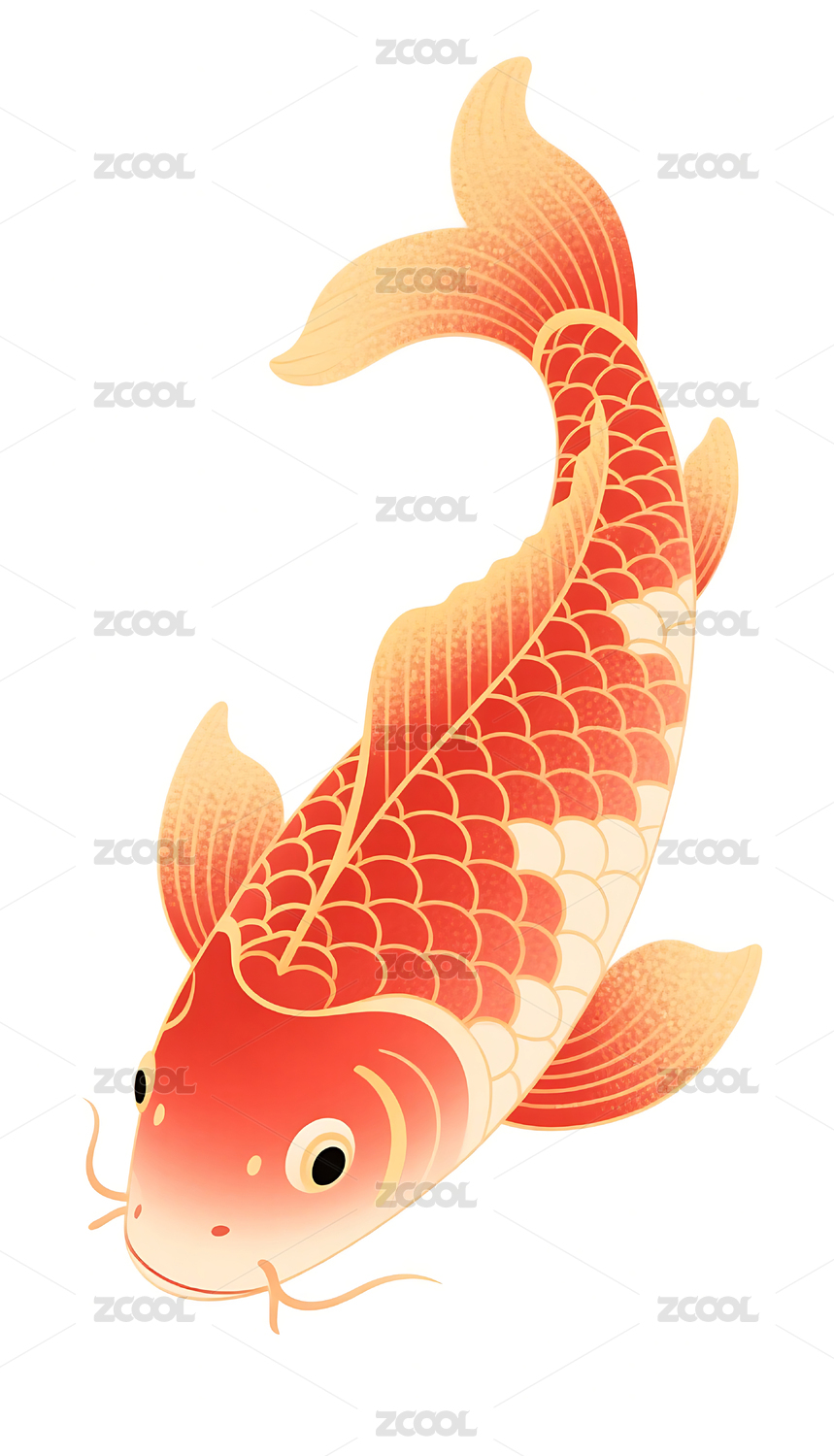 蓝色背景浮世绘日风一条锦鲤跃起在海浪插画