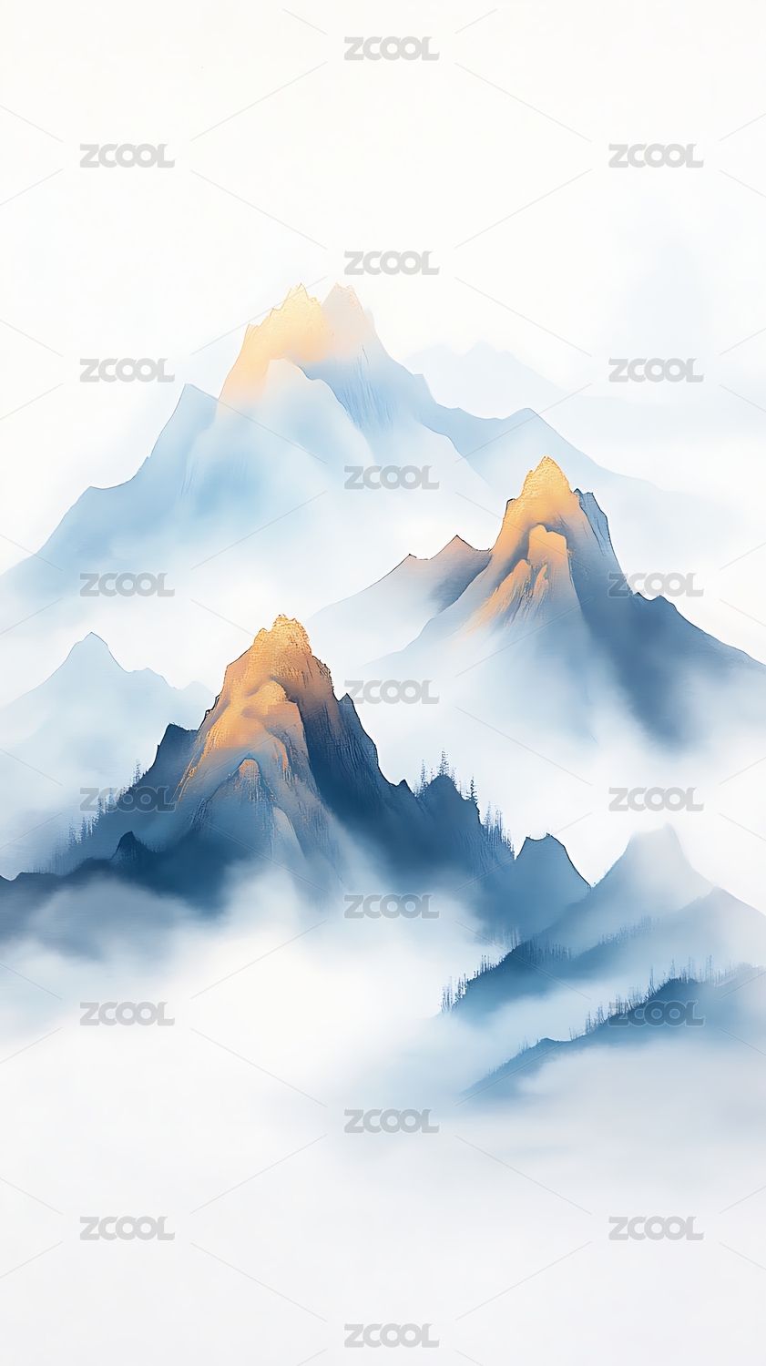 水墨,抽象,山水,层次,金色,大气,中国风,传统,留白,意境