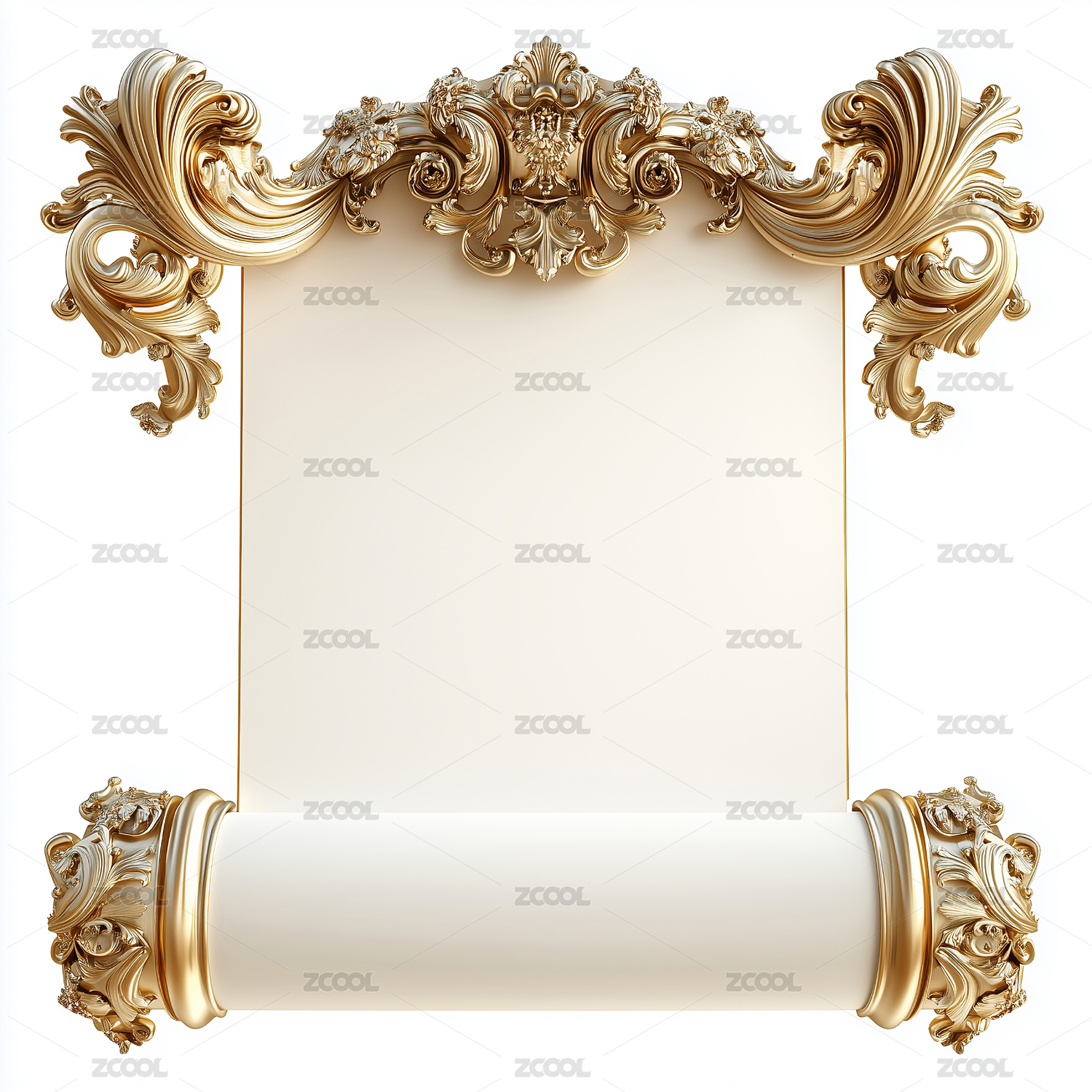无人,插画,3D,空白,花纹,立体,纸,记录,告示,金色