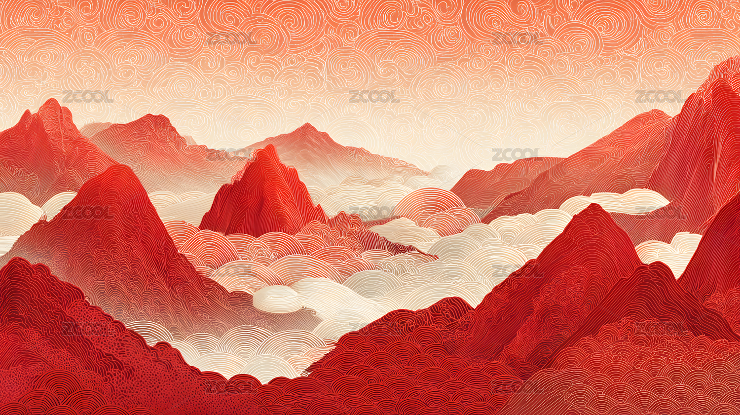 山峦云海红霞漫天