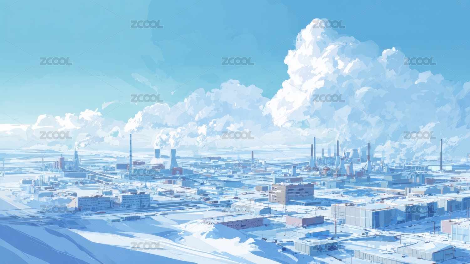 科幻长满绿色植物的城市道路侧高楼3D插画