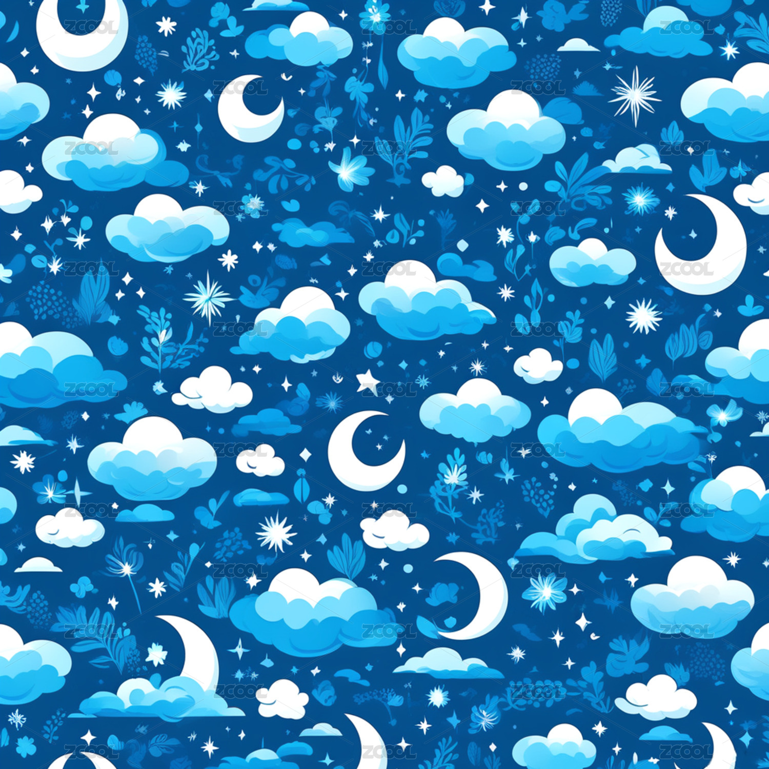 自然清新夜空图样蓝天白云月亮星空图案背景