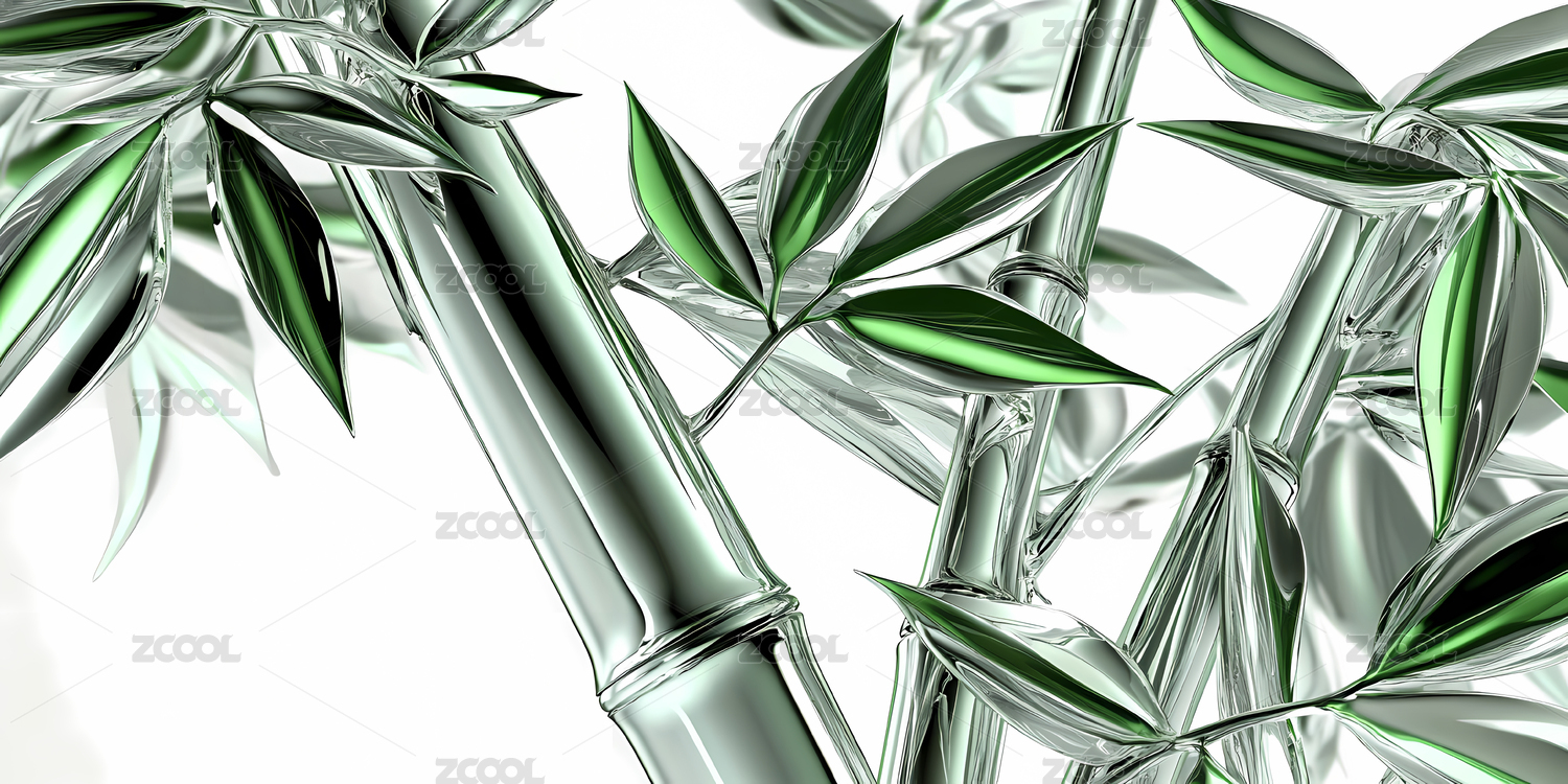 透明竹子与绿叶的和谐画卷