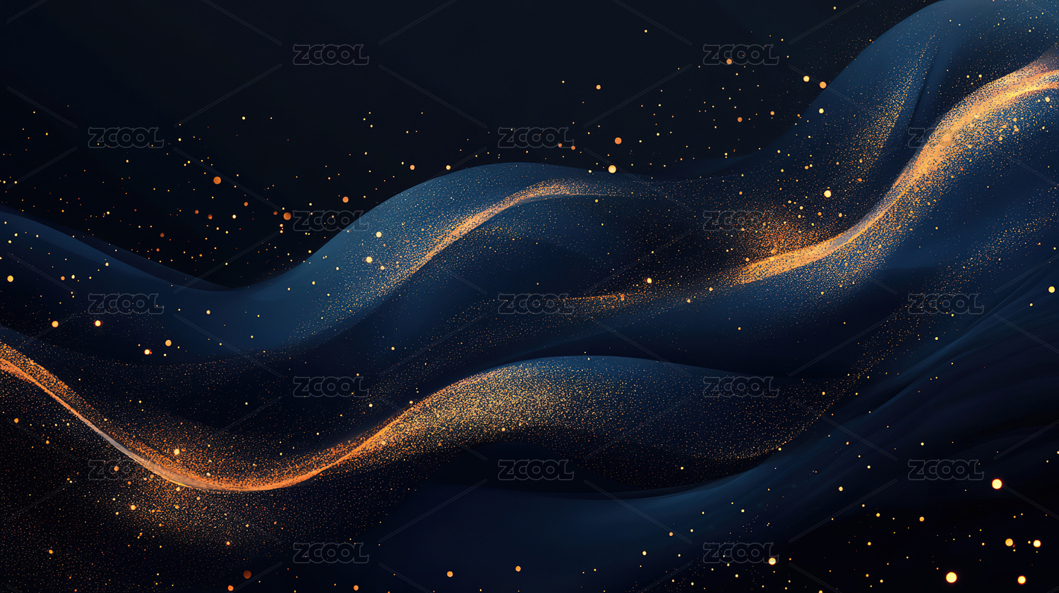 深蓝背景金色波浪抽象图案