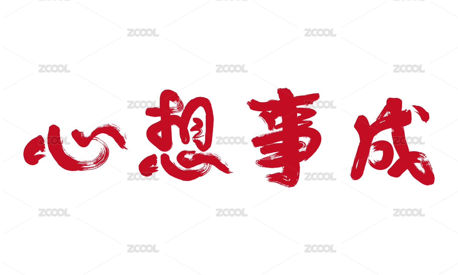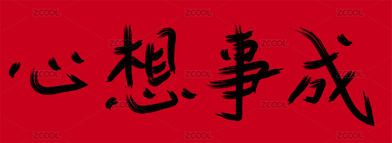国潮书法毛笔字手写体心想事成