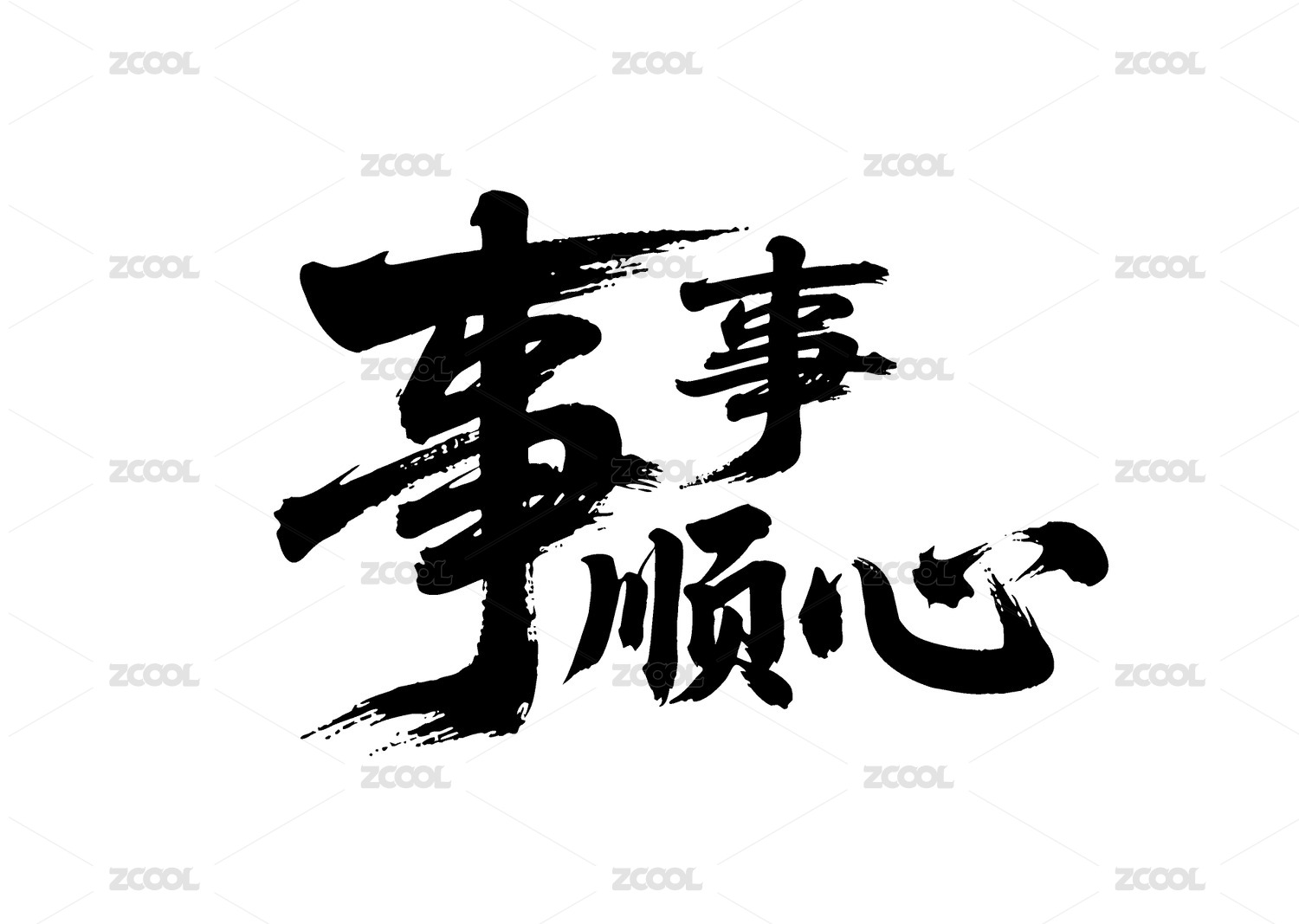 事事顺心矢量书法手写毛笔字