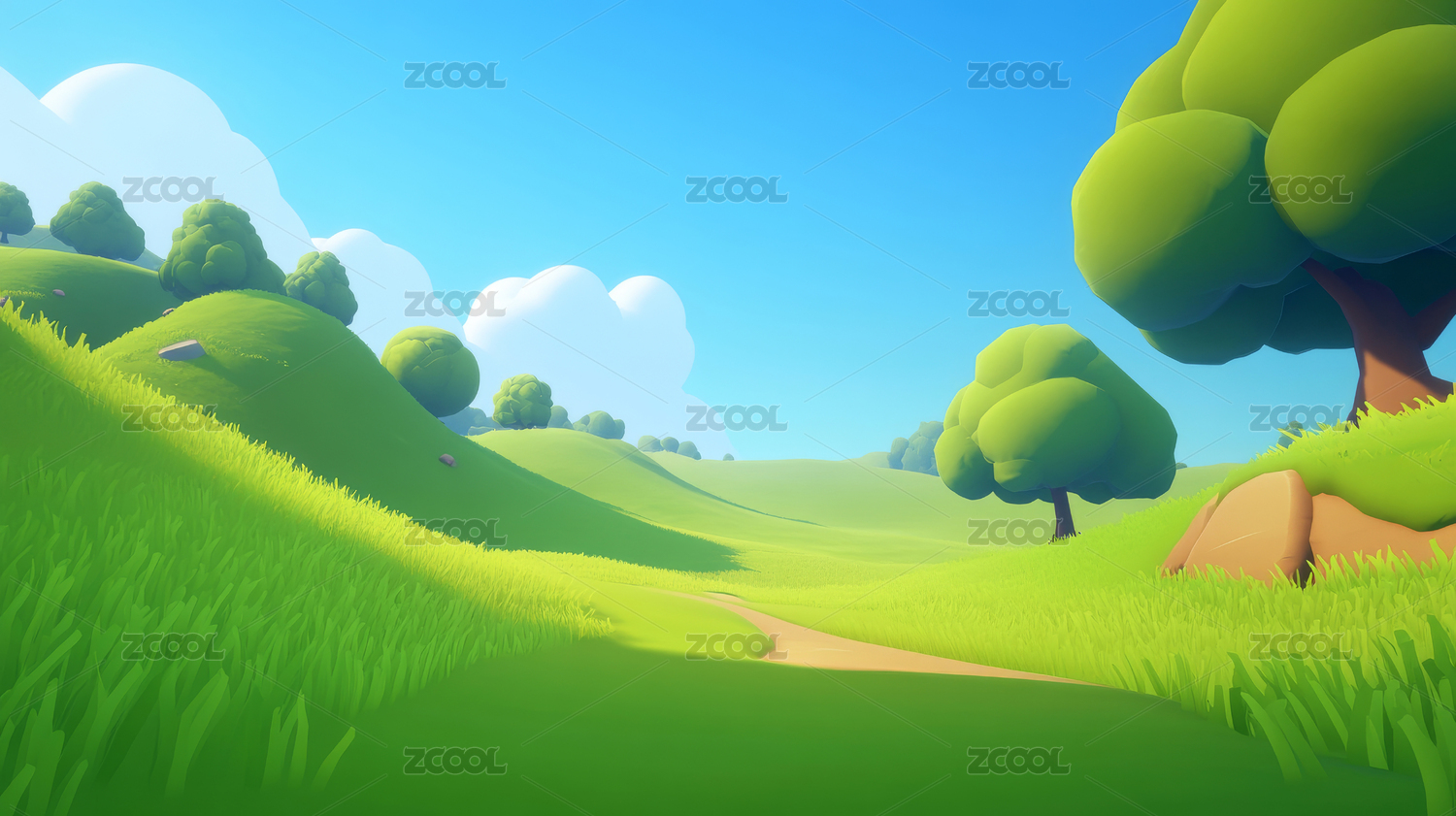 森林,树木,阳光,绿草,蓝天,自然,清晨,宁静,石头