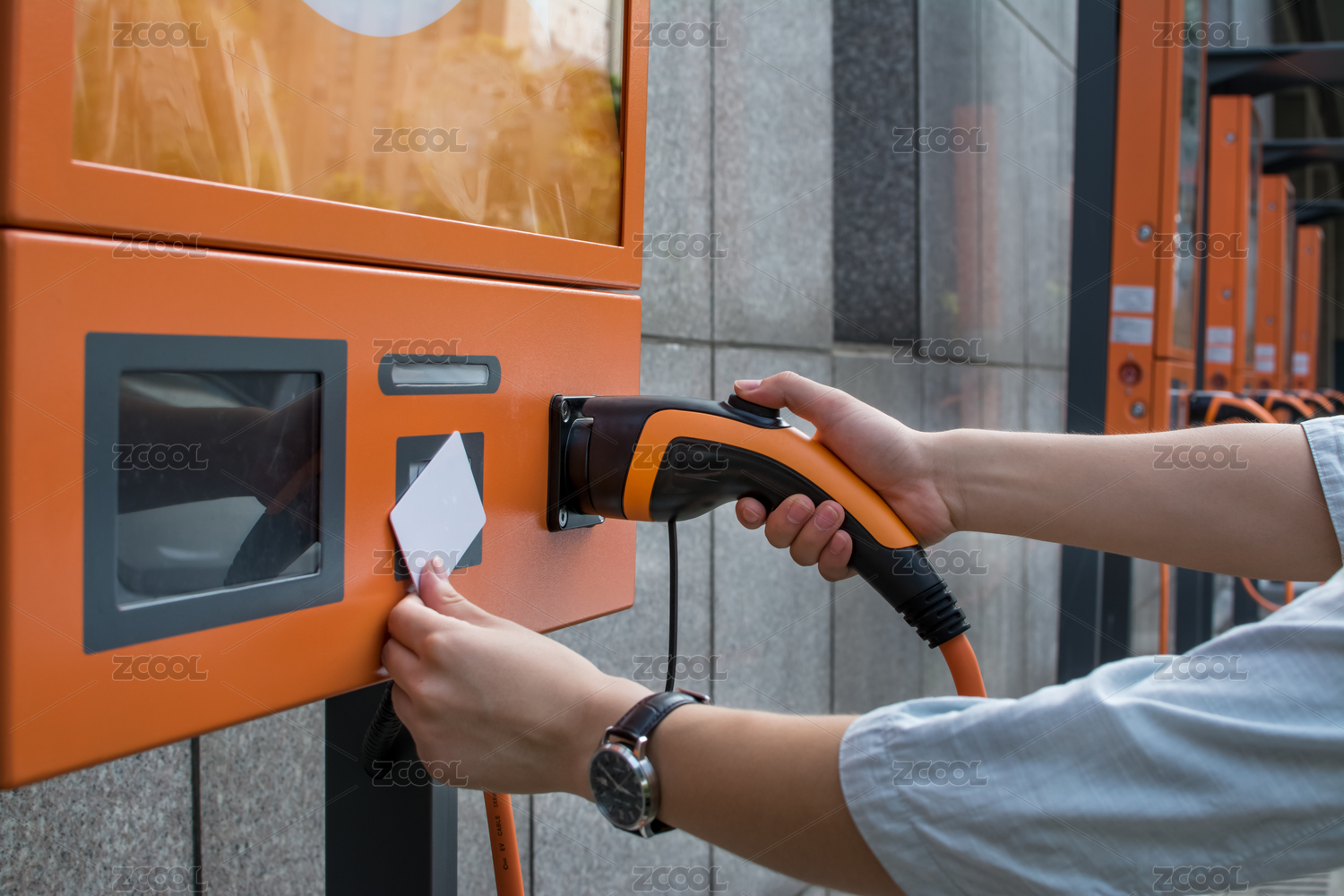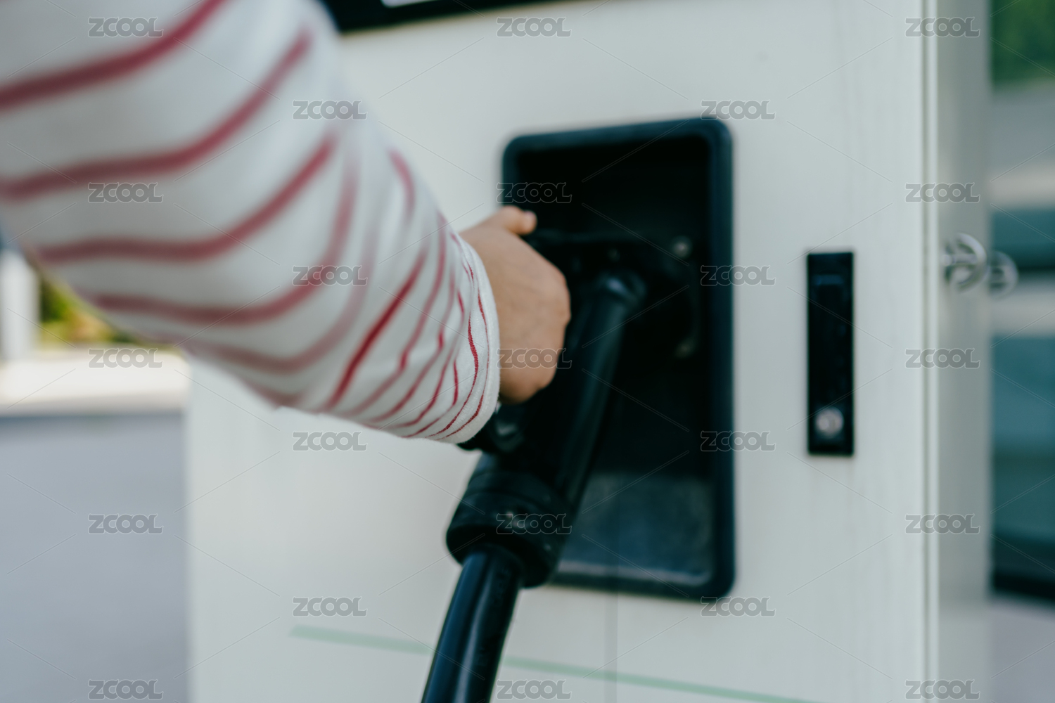 手握充电枪插入电动车