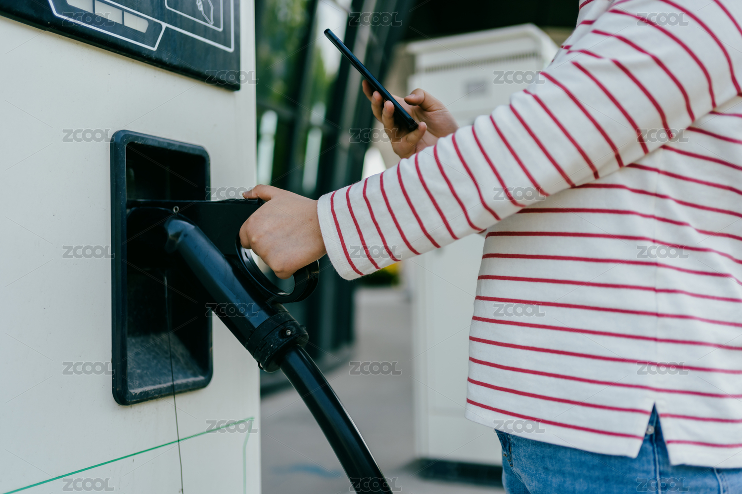 亚洲女性在使用电动汽车充电桩