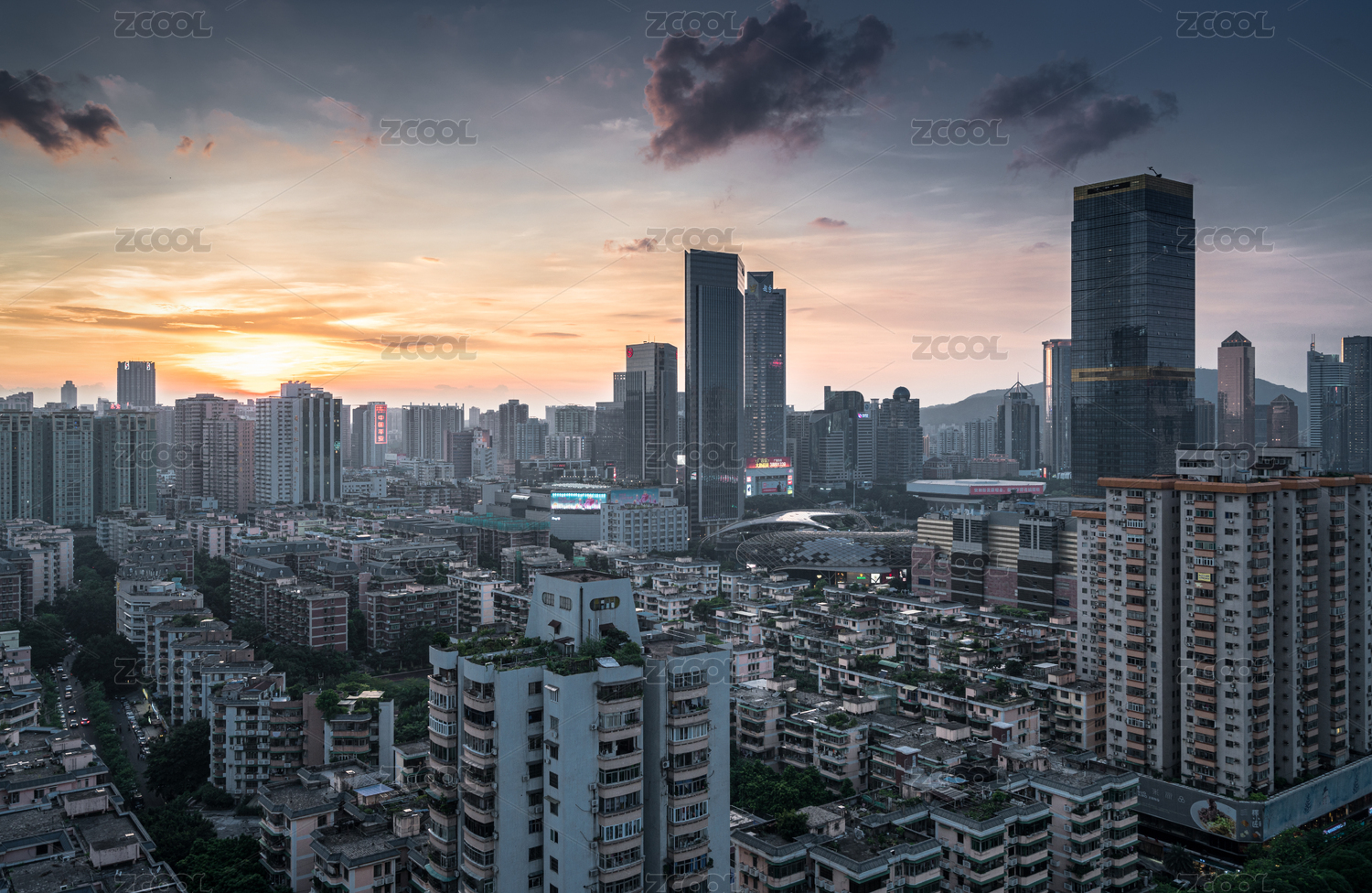 中国深圳市深圳城市风光罗湖片区傍晚时分