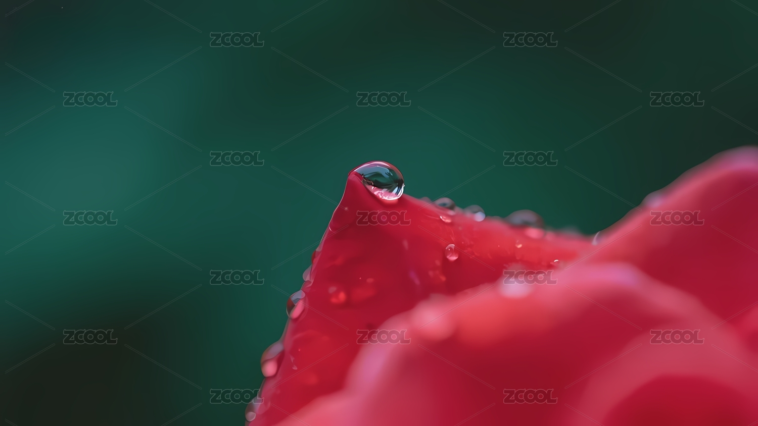 特写雨后火焰玫瑰红色花瓣局部水珠