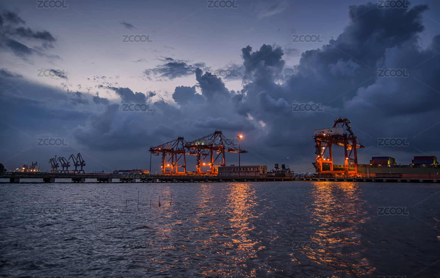 在乌云背景下的港口码头