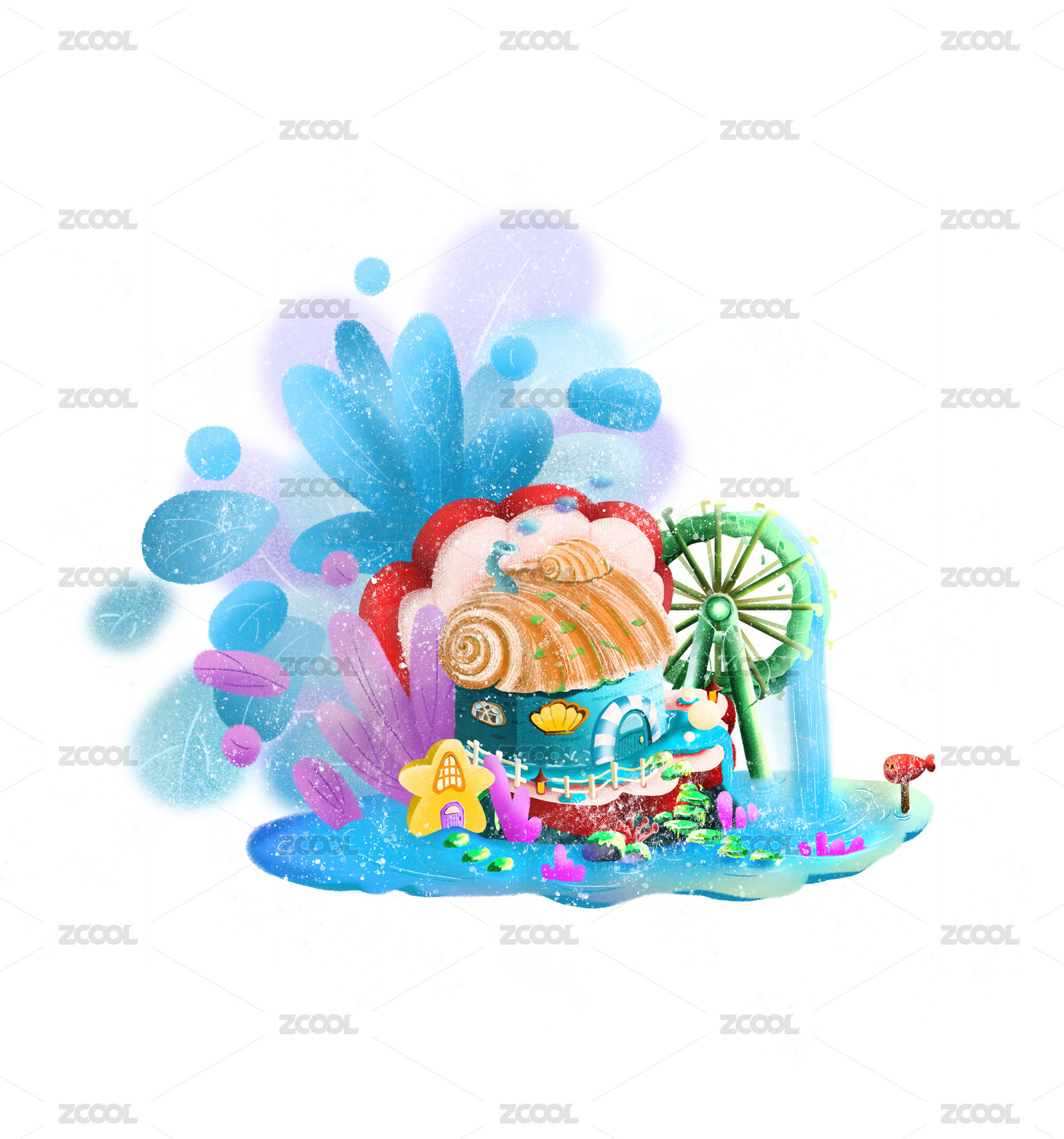 蓝色紫红色黄色的小可爱 马 牛 森林