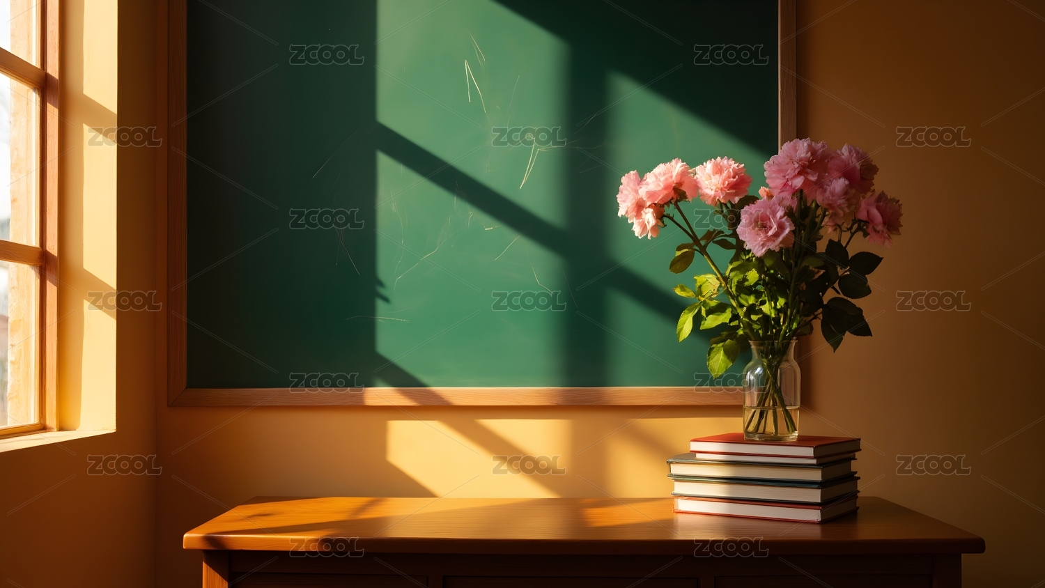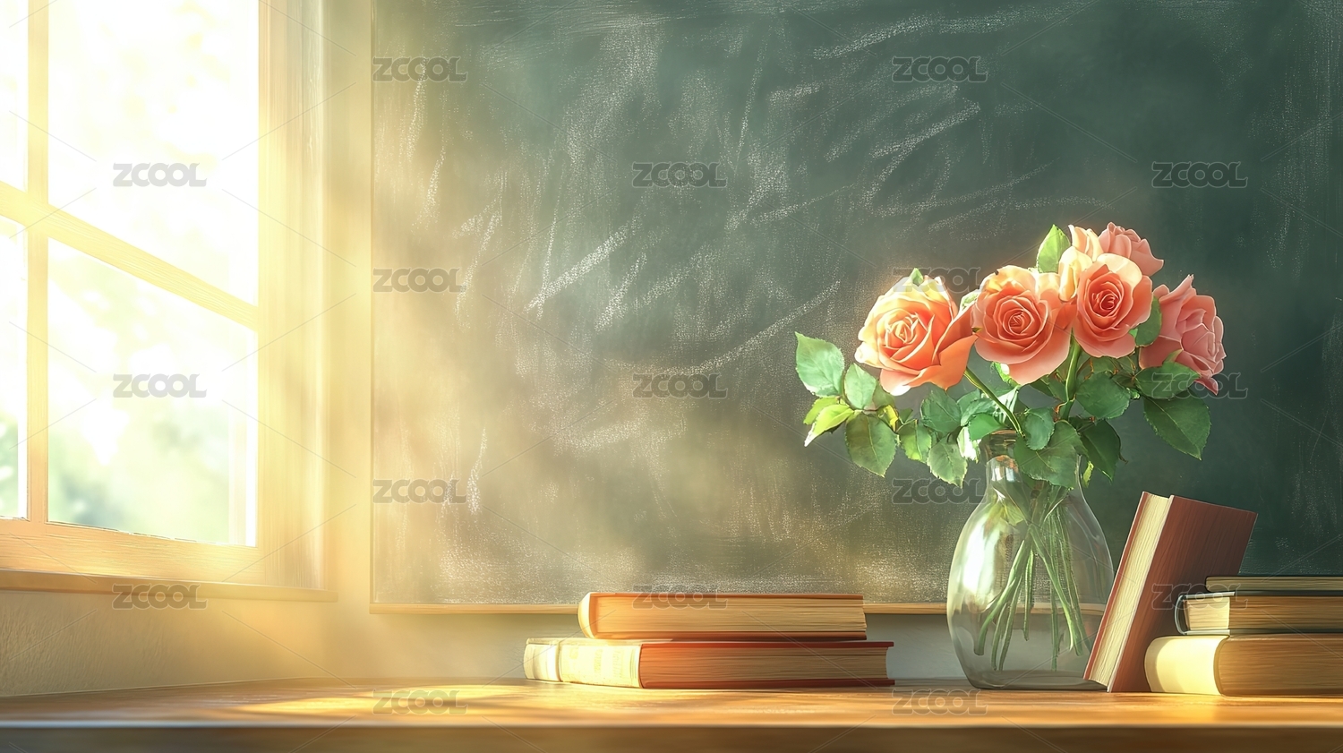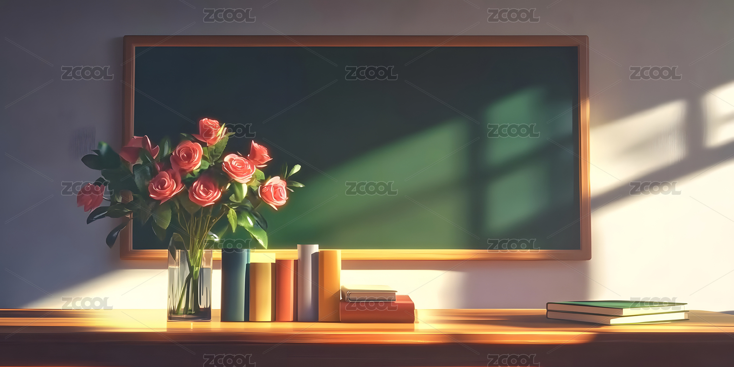 教室里的黑板和玫瑰花