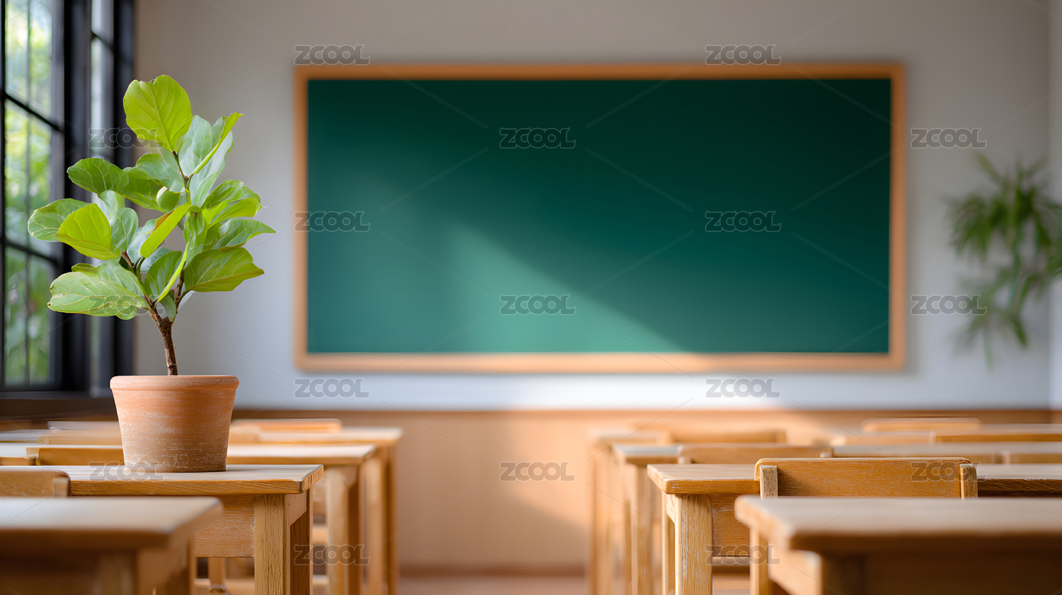阳光教室黑板与书桌