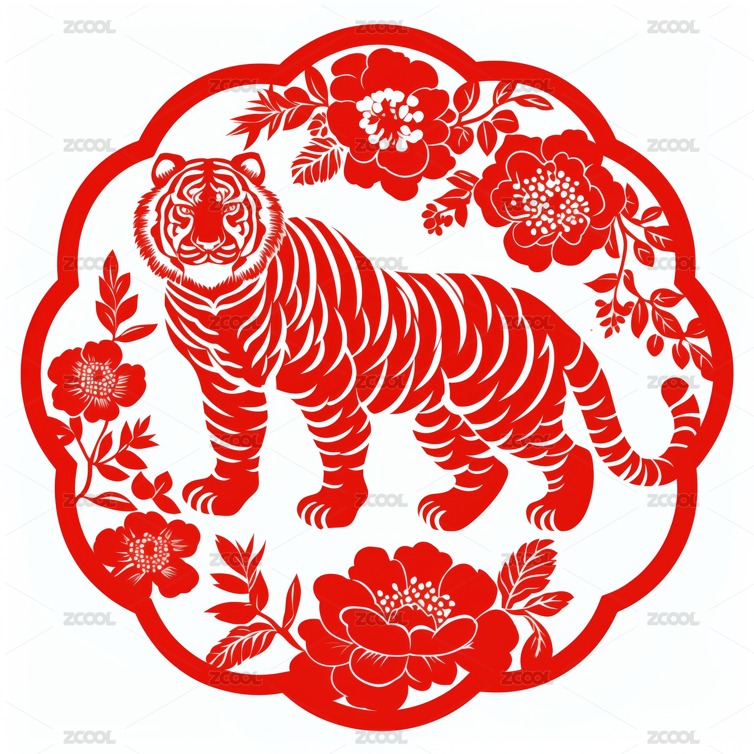 虎年图标传统剪纸风格设计