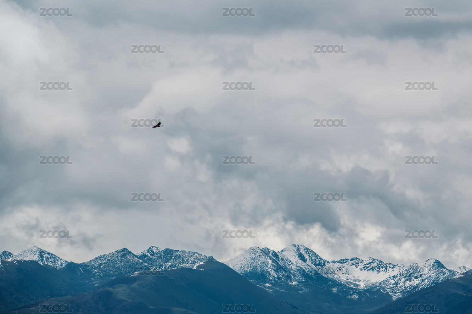 中国西藏冬季蓝天下迁徙的鸟类飞越雪山