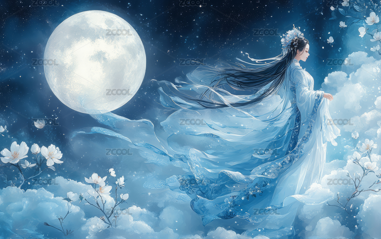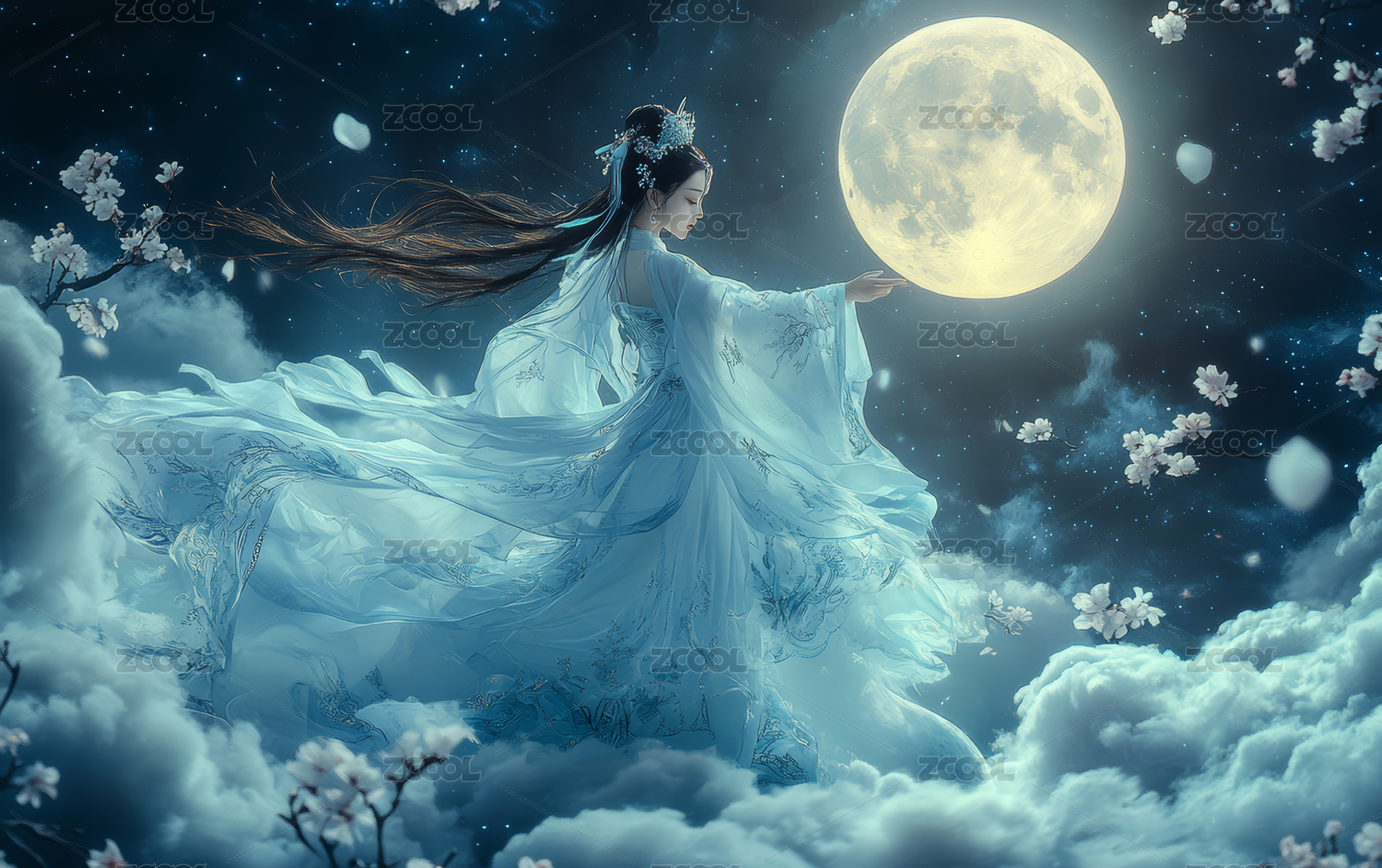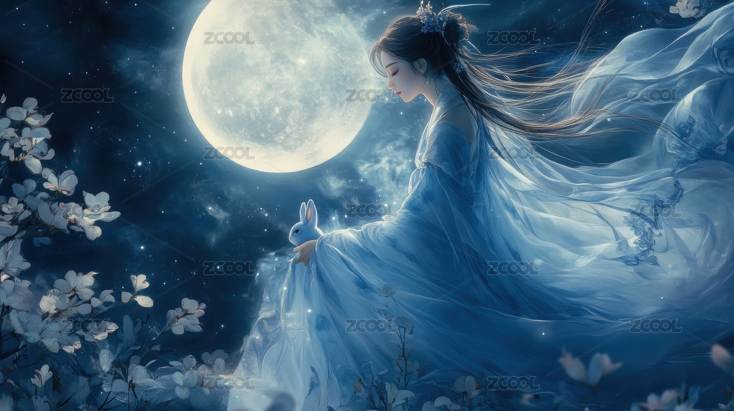 AIGC202402,中秋,嫦娥,玉兔,仙境,主题,满月,桂花