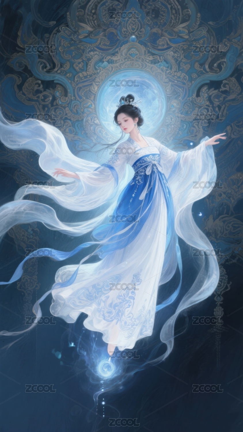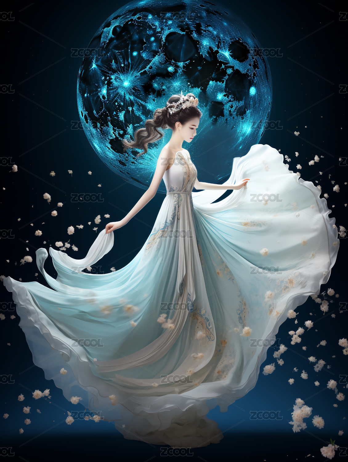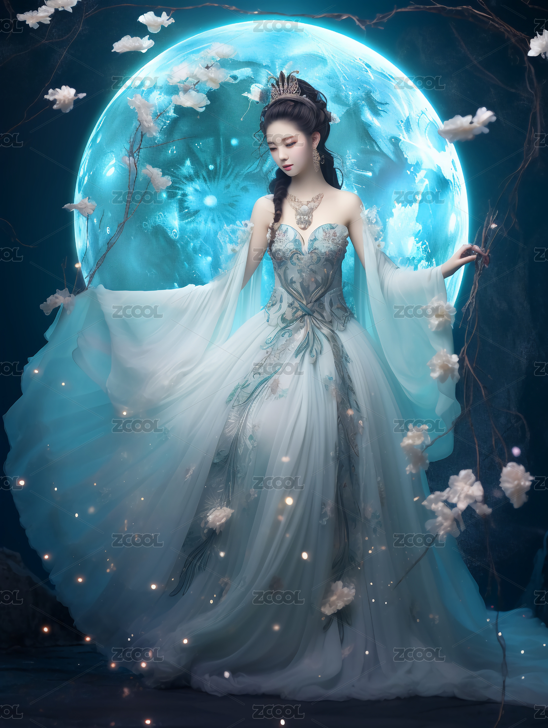AIGC202402,中秋,嫦娥,玉兔,仙境,主题,满月,桂花