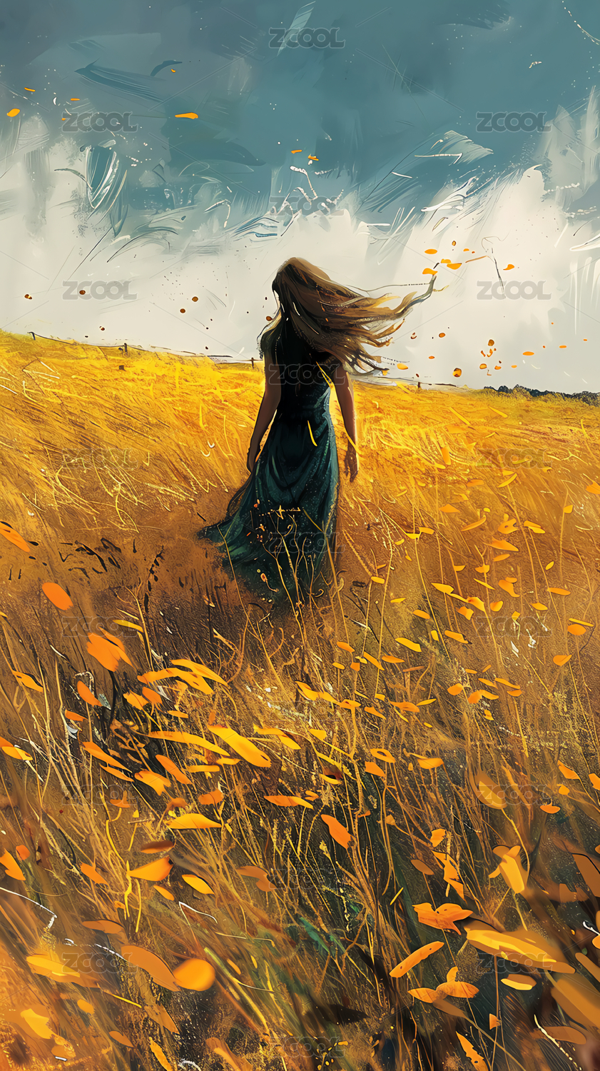 抽象派风格秋天女性插画背景壁纸