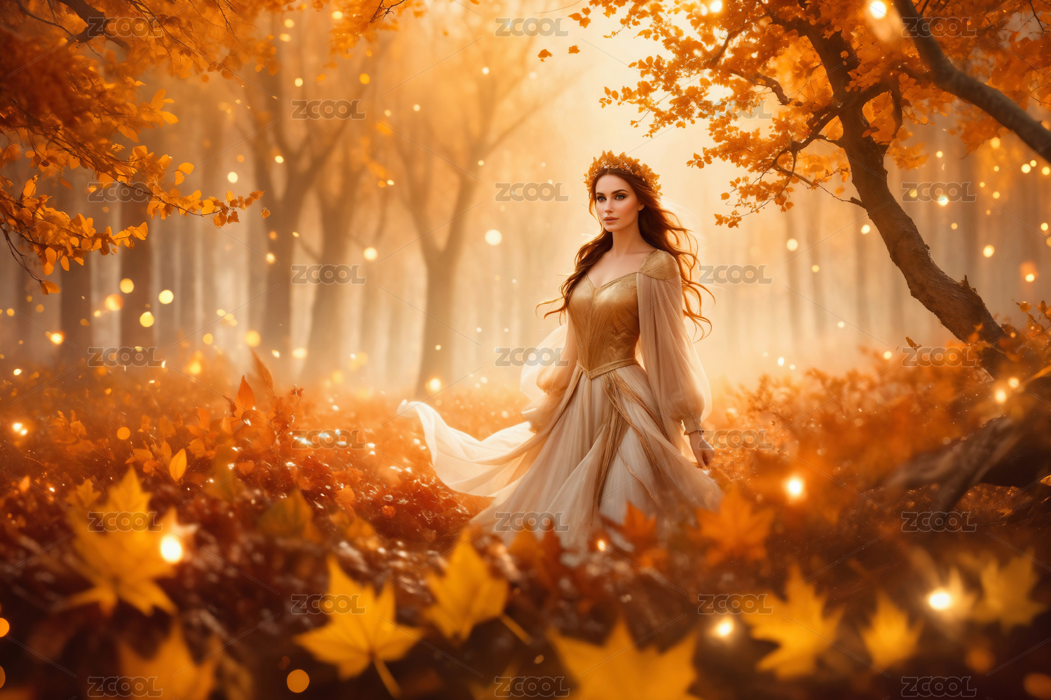 秋日森林中的梦幻少女主题