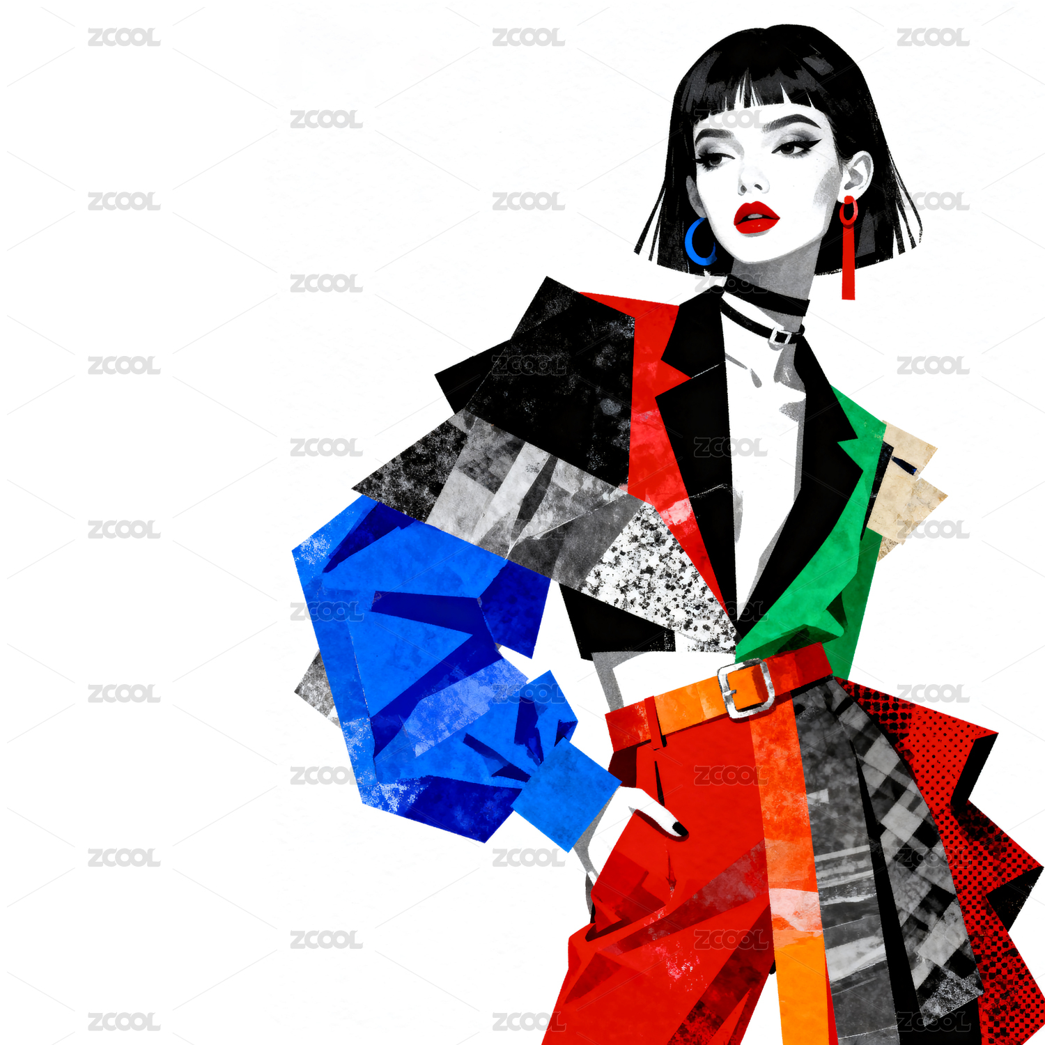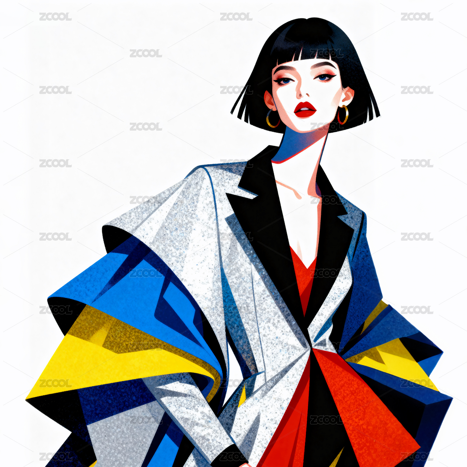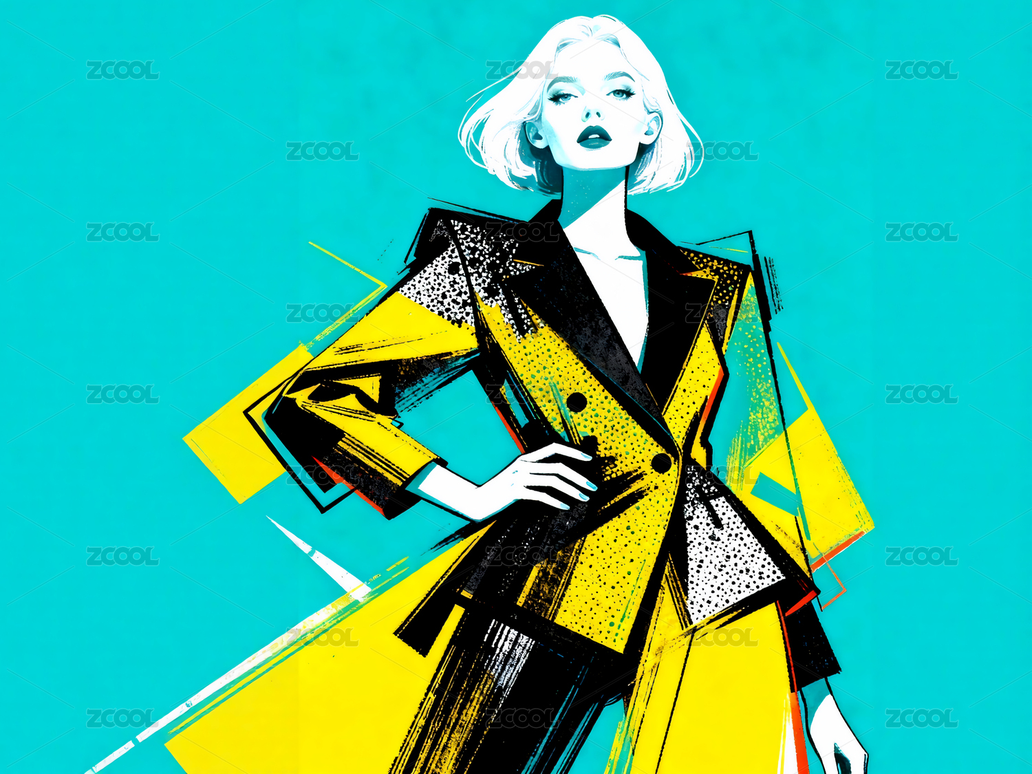 插画风格时尚美女的艺术图