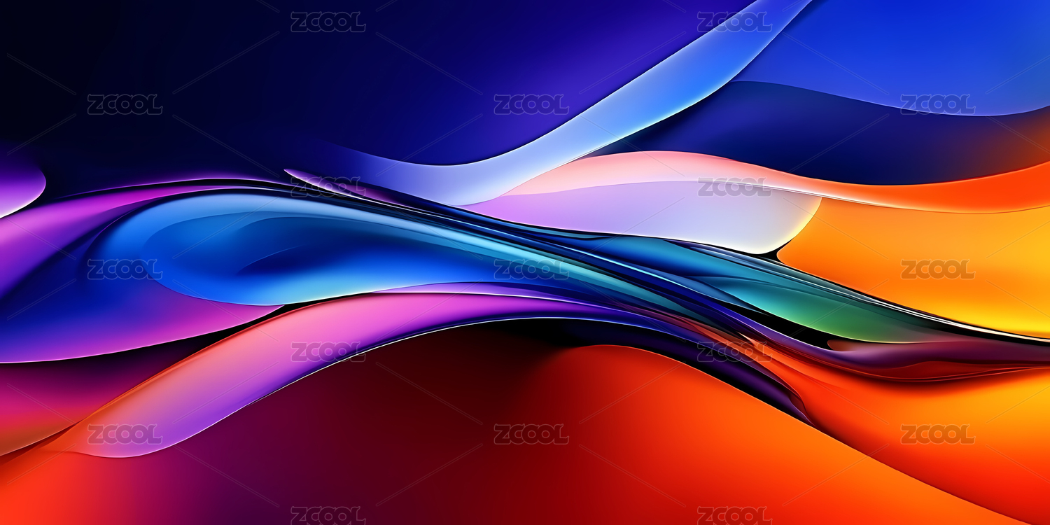 梦幻,曲线,玻璃,透明,晶莹剔透,渐变,蓝紫,橙色,光影,动感