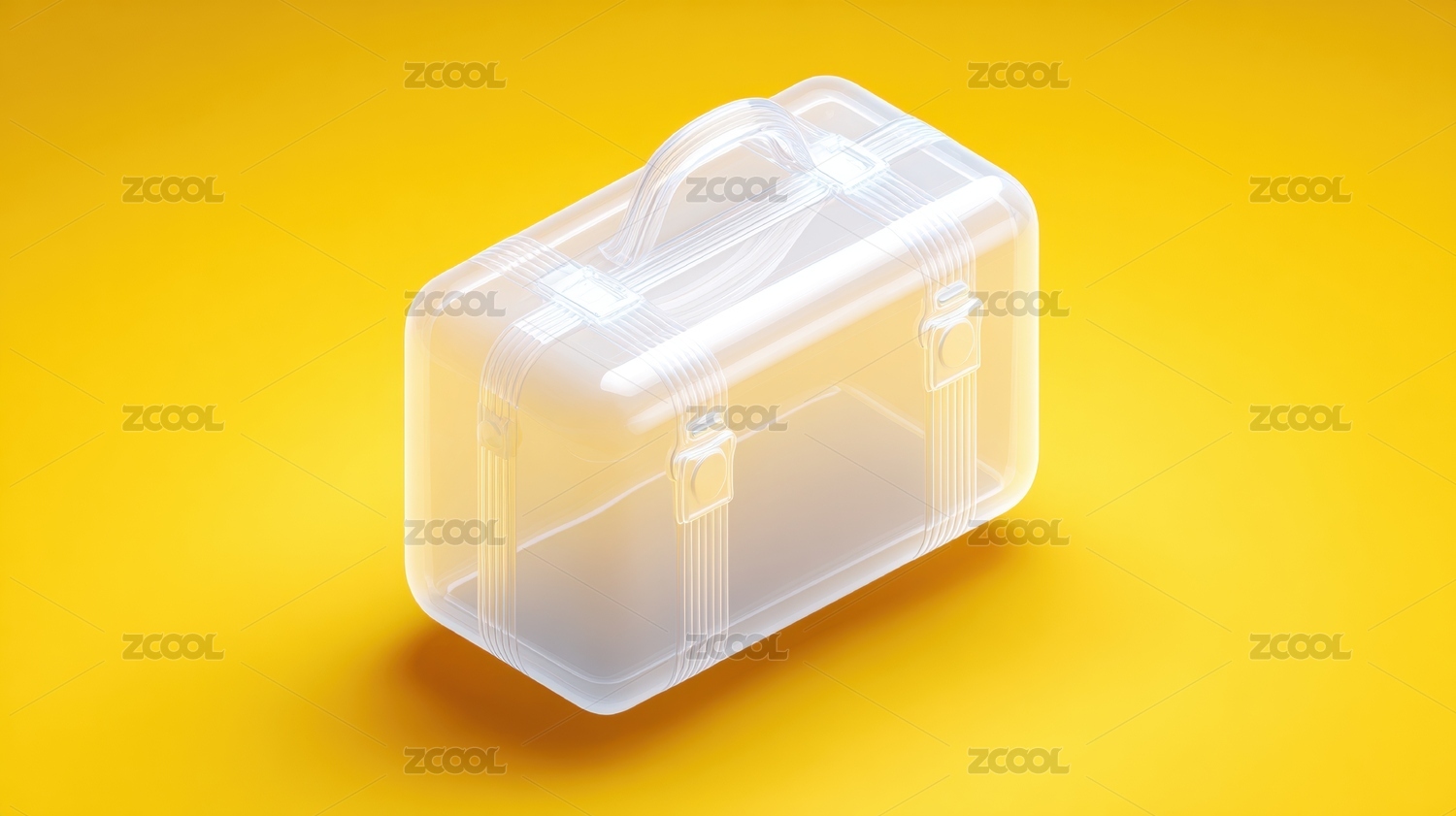 透明行李箱置于黄色背景