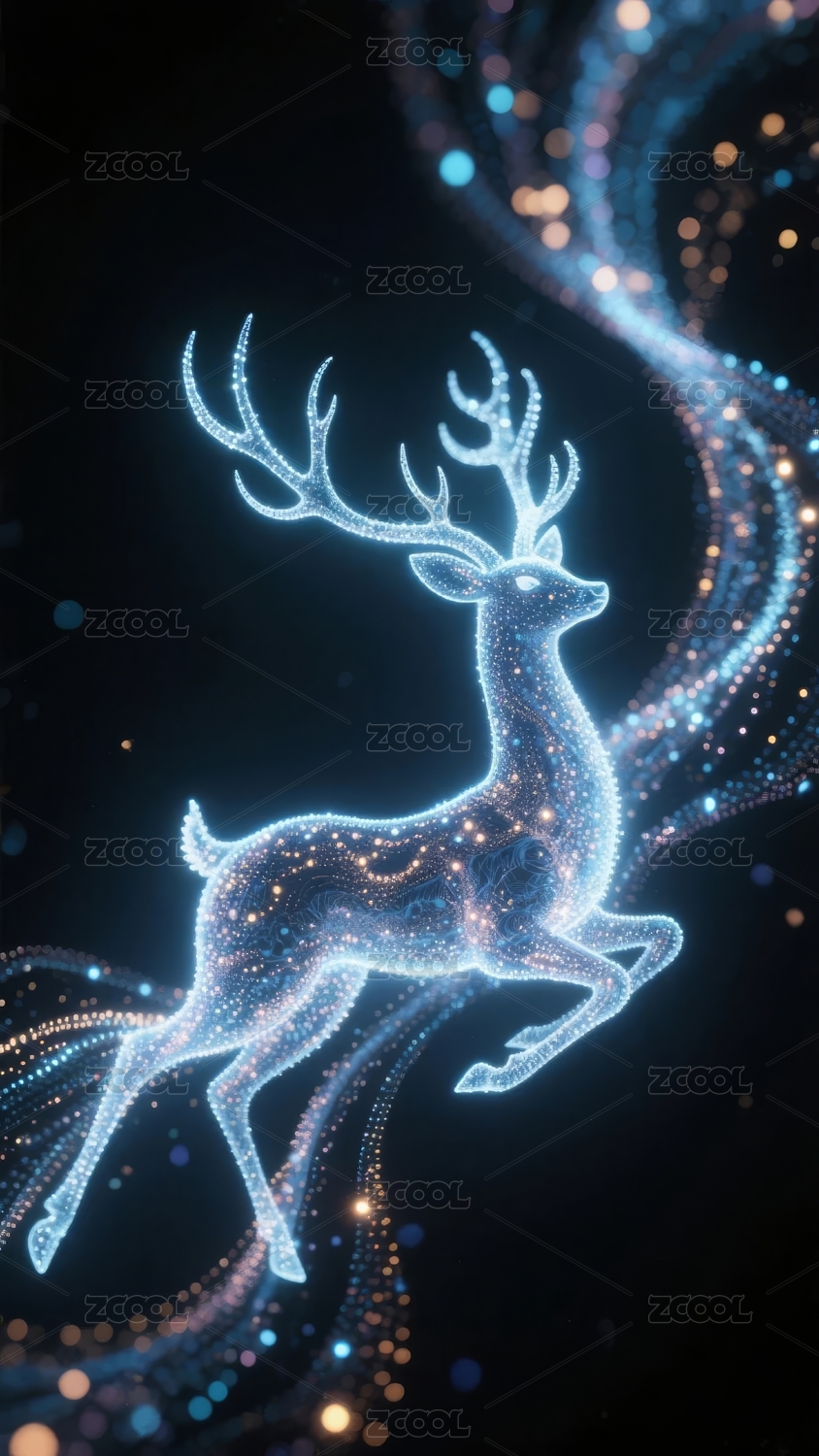 驯鹿,鹿,动物,金色,体积光,发光,光芒,夜晚,天空,树木