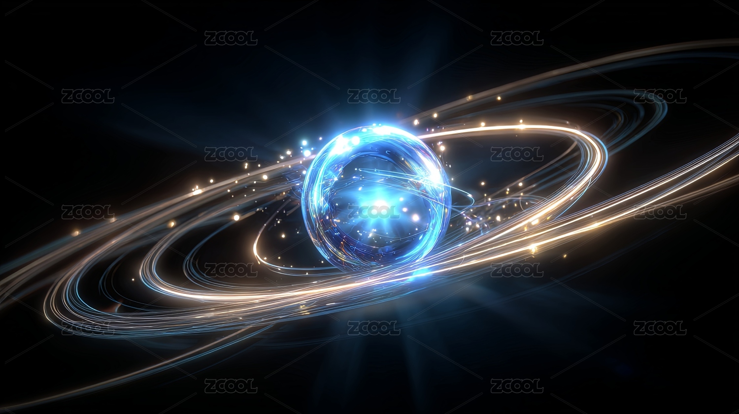 科幻风格发光球体与能量环