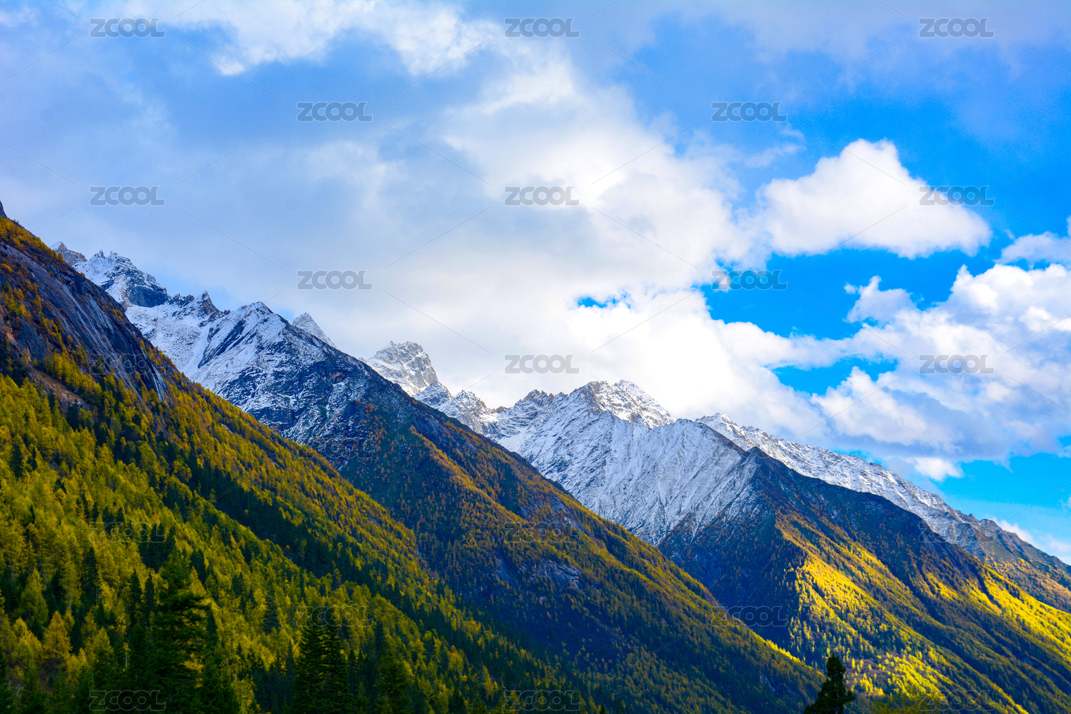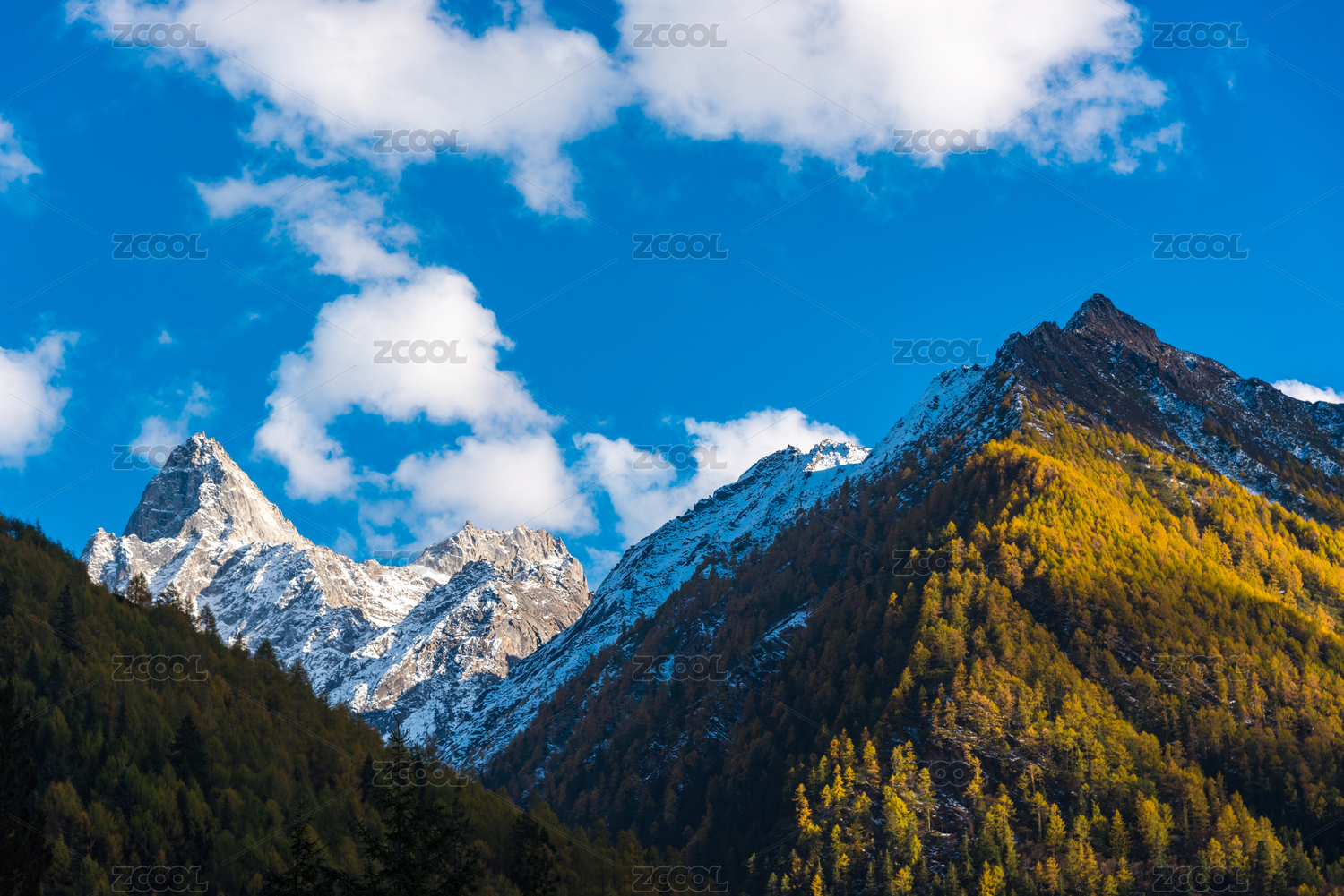 川西秋色,雪山与金色松林