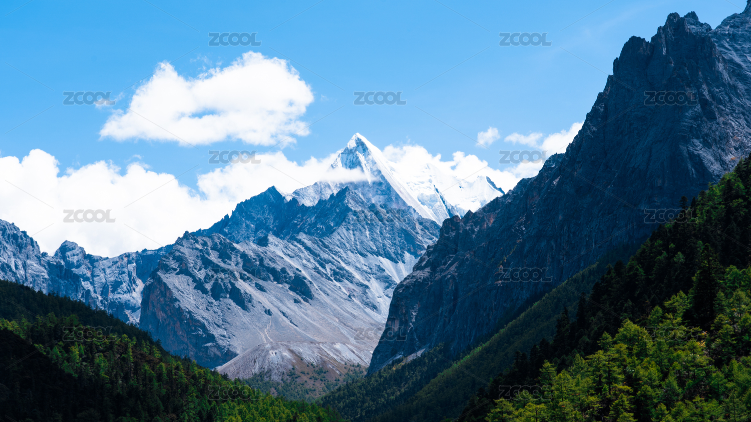 四川阿坝四姑娘山双桥沟景区的雪山