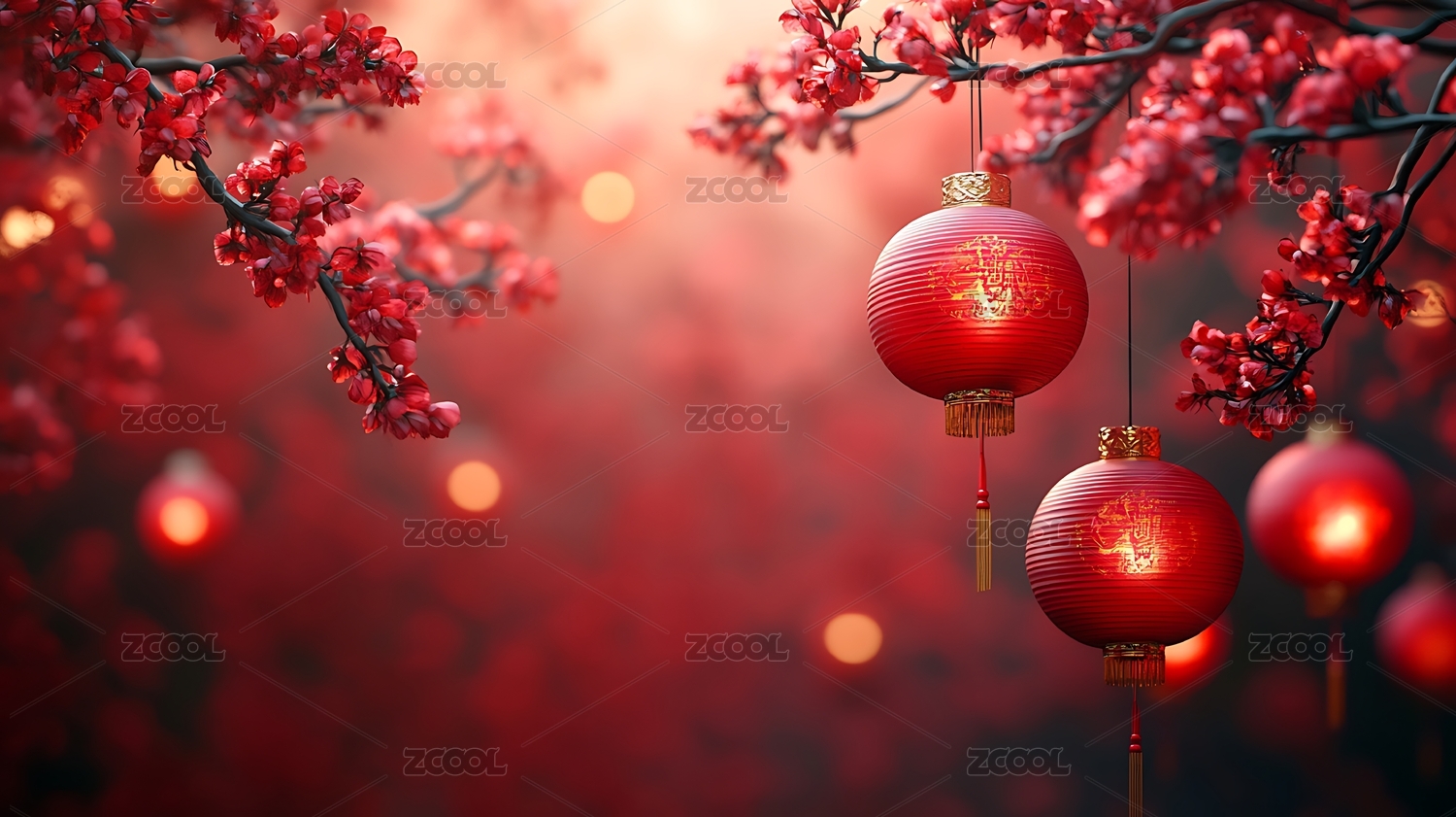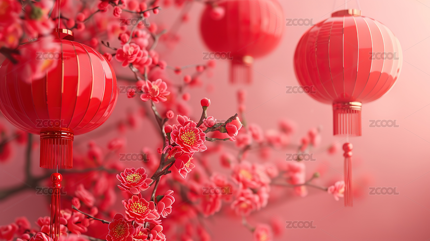新年红灯笼与桃花
