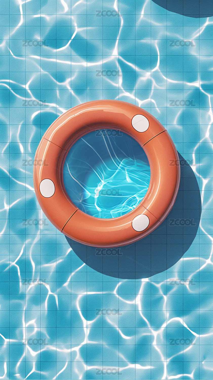 夏日风情插画游泳池漂浮橙色的游泳圈