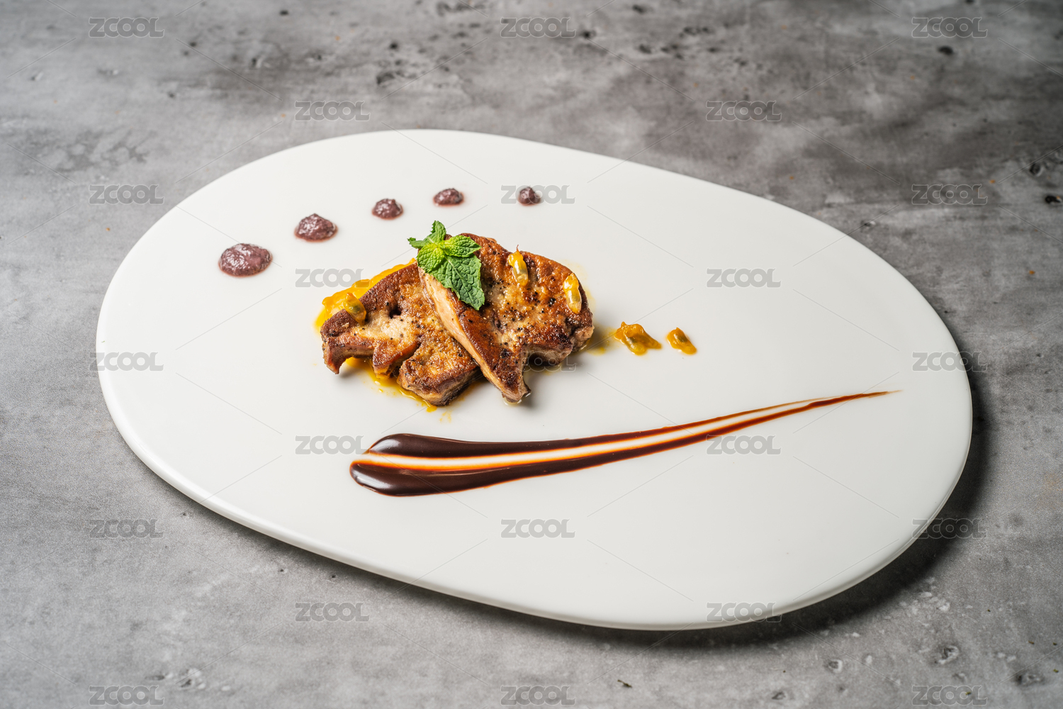 煎带子贝柱瑶柱配火腿西餐前菜特写