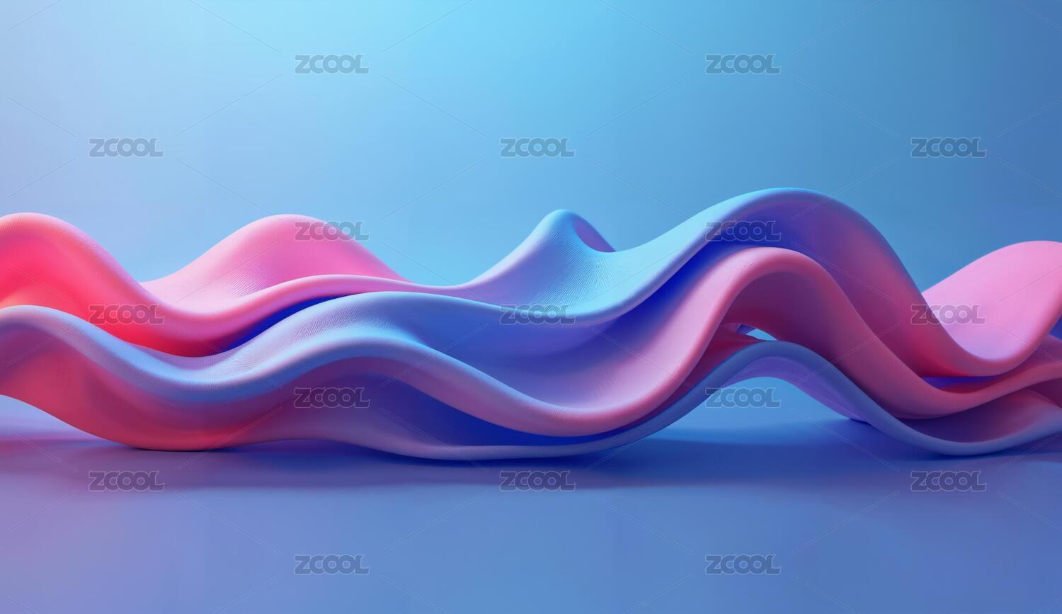 粉色蓝色波浪形抽象艺术