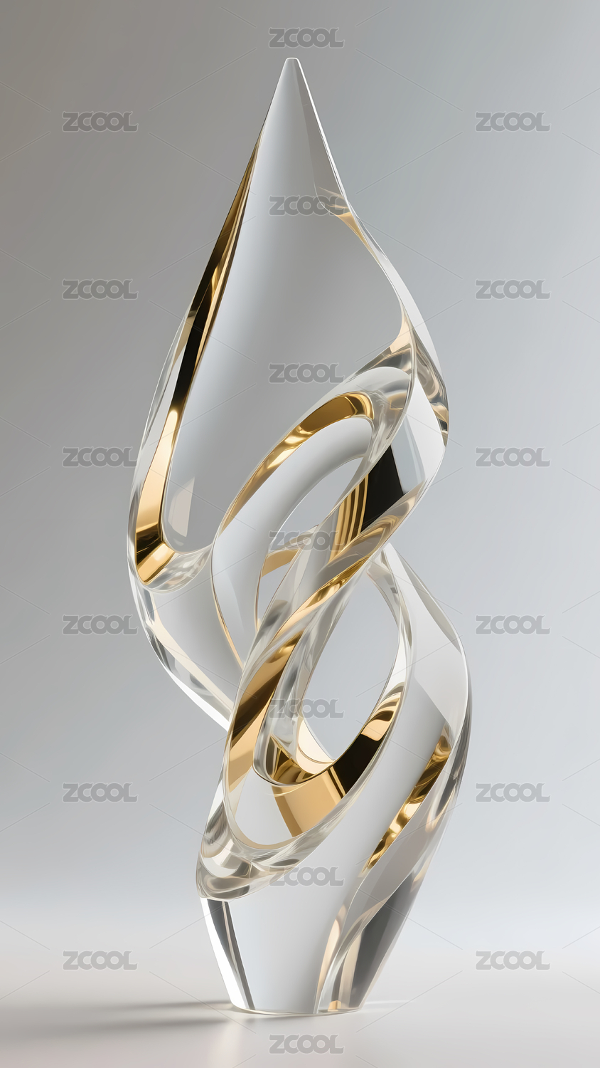 镶金水晶材质的抽象艺术雕塑