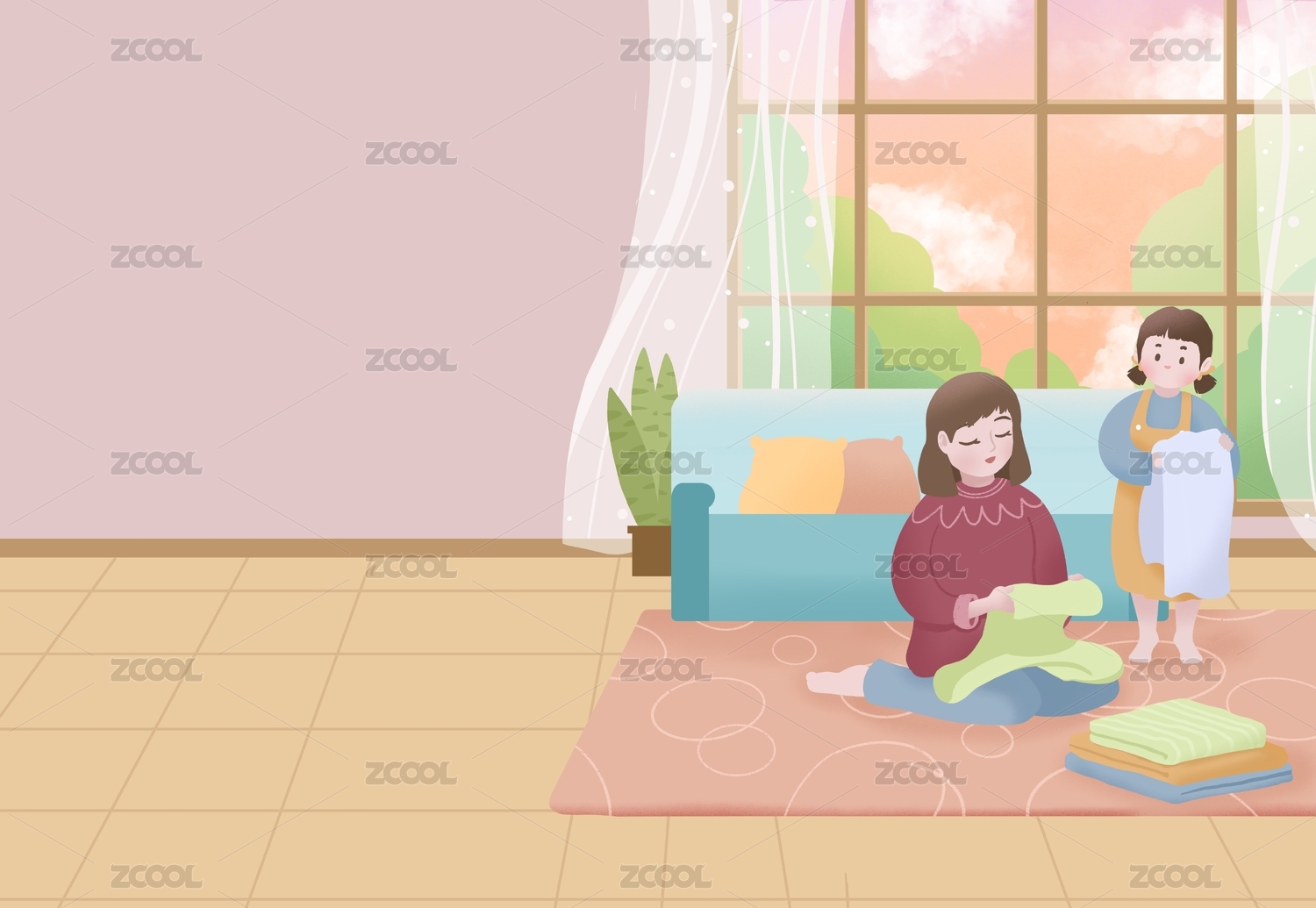 孙女,家中,奶奶,端水,可爱风格,重阳节,孝敬老人,插画,喝水,孝敬