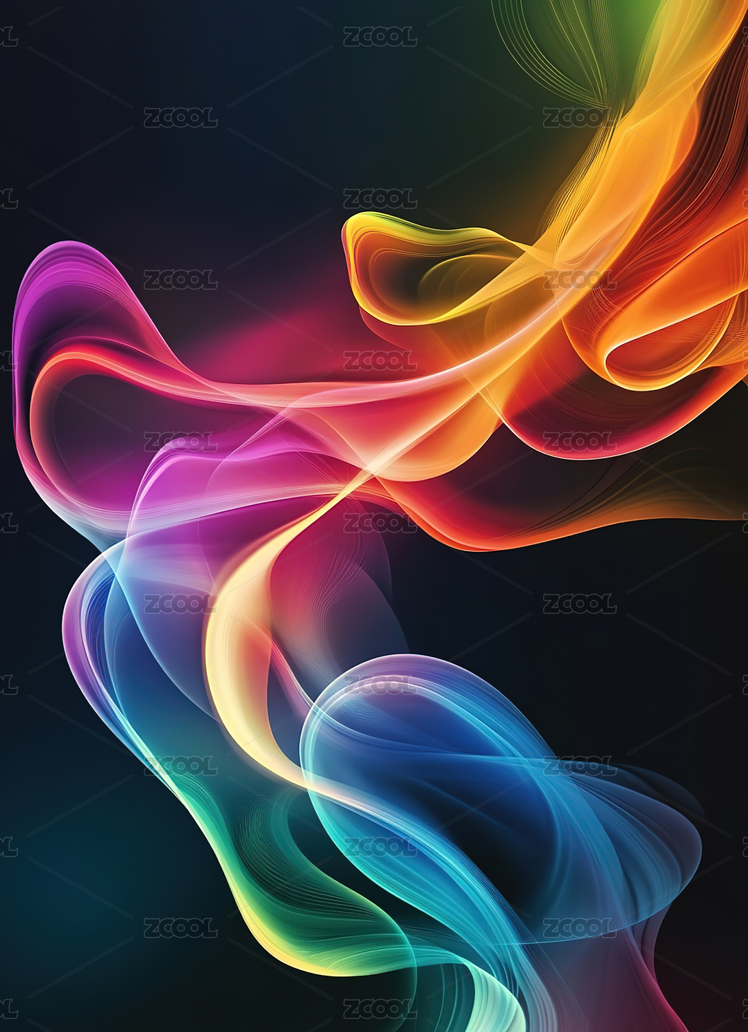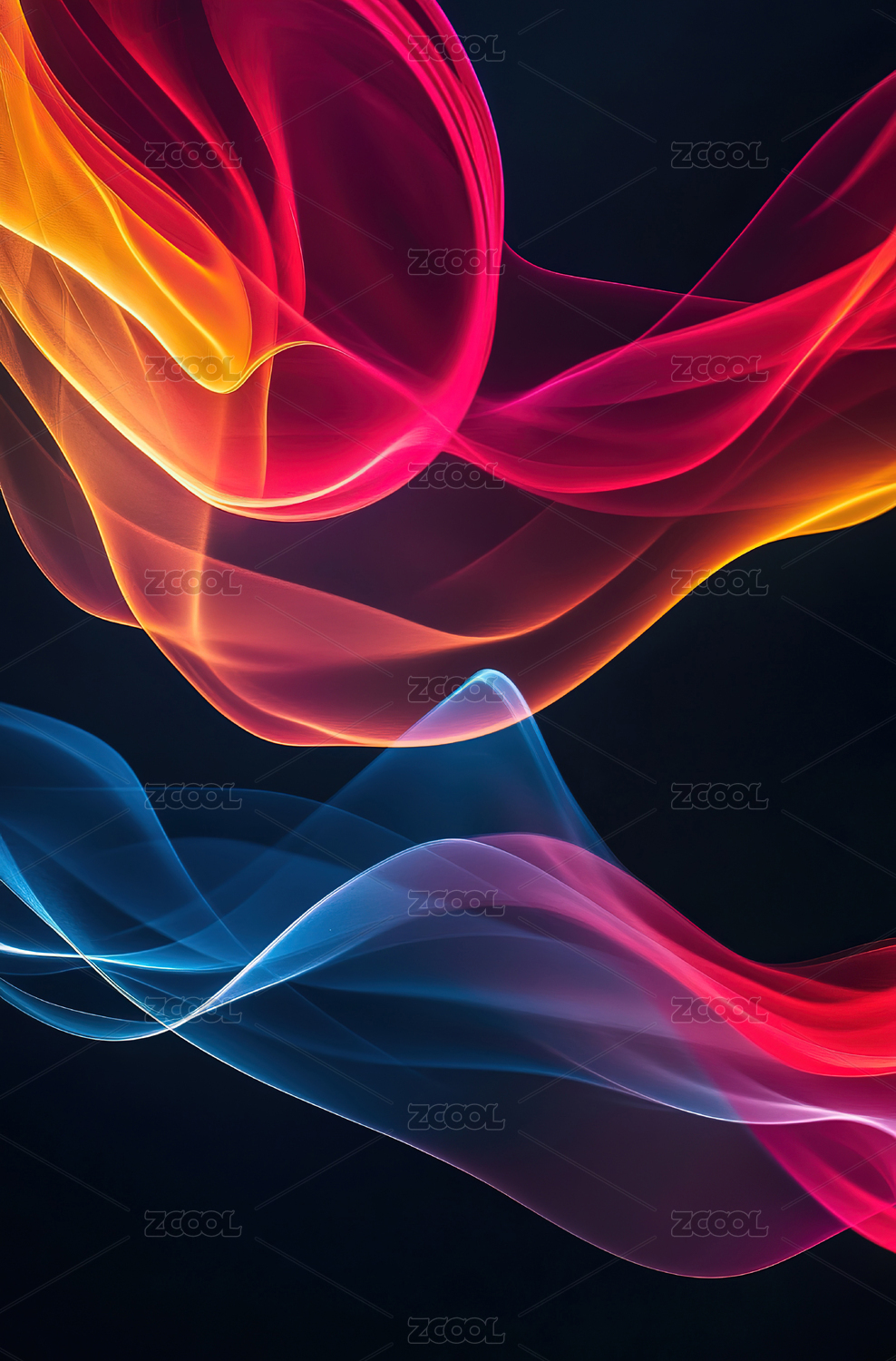 抽象的蓝色紫色光晕在黑暗背景中流动