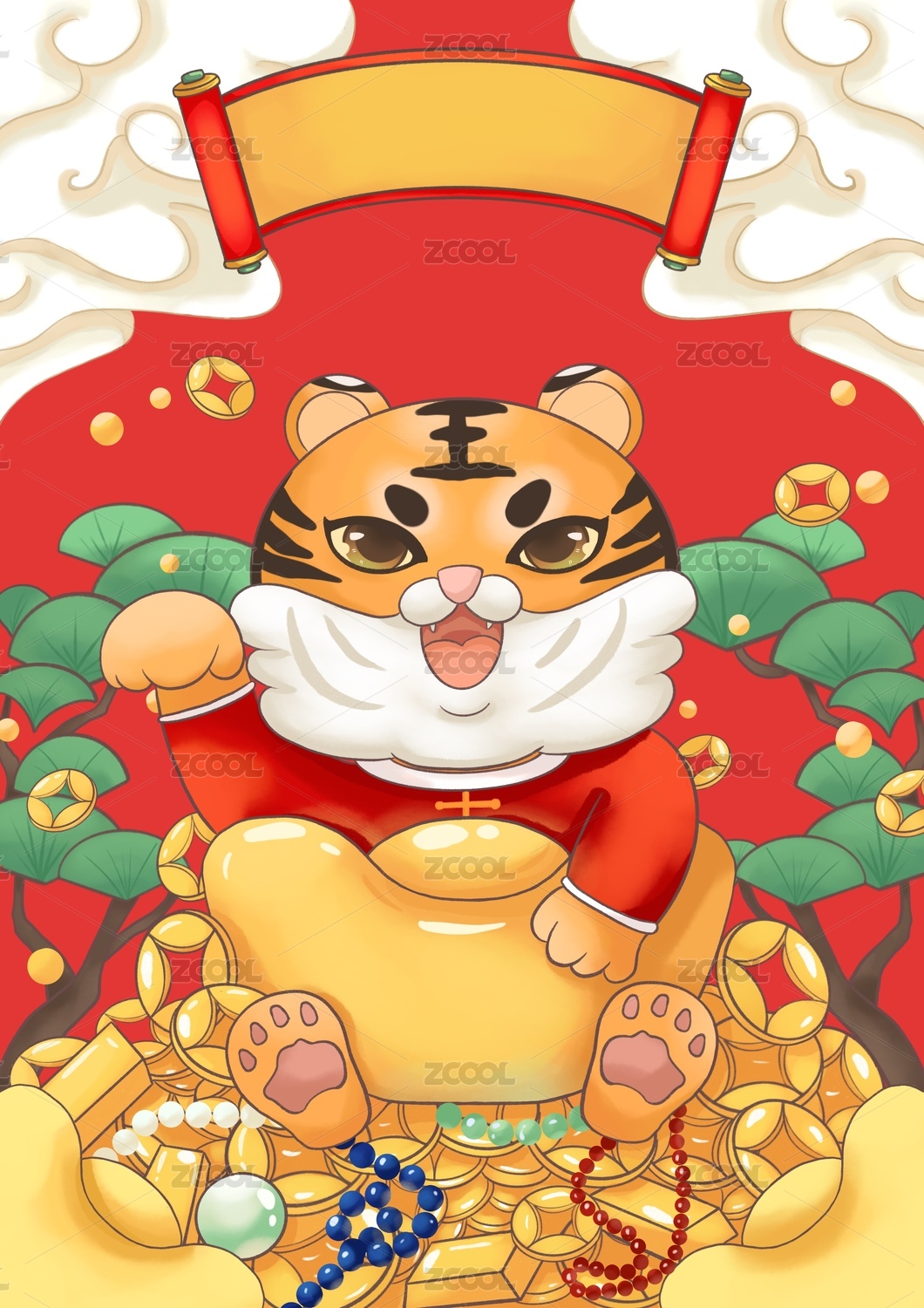 2022虎年插画春节发红包