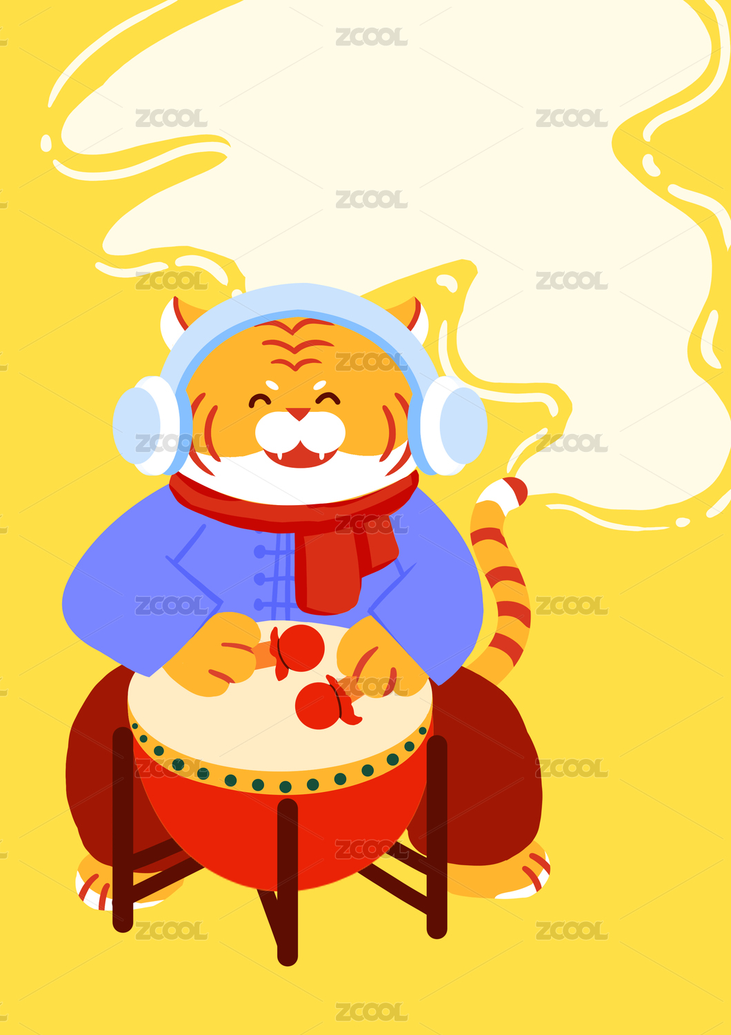 HEVCSF2022,插画,绘画,中国风,国潮,虎年,2022,虎,十二生肖,成语