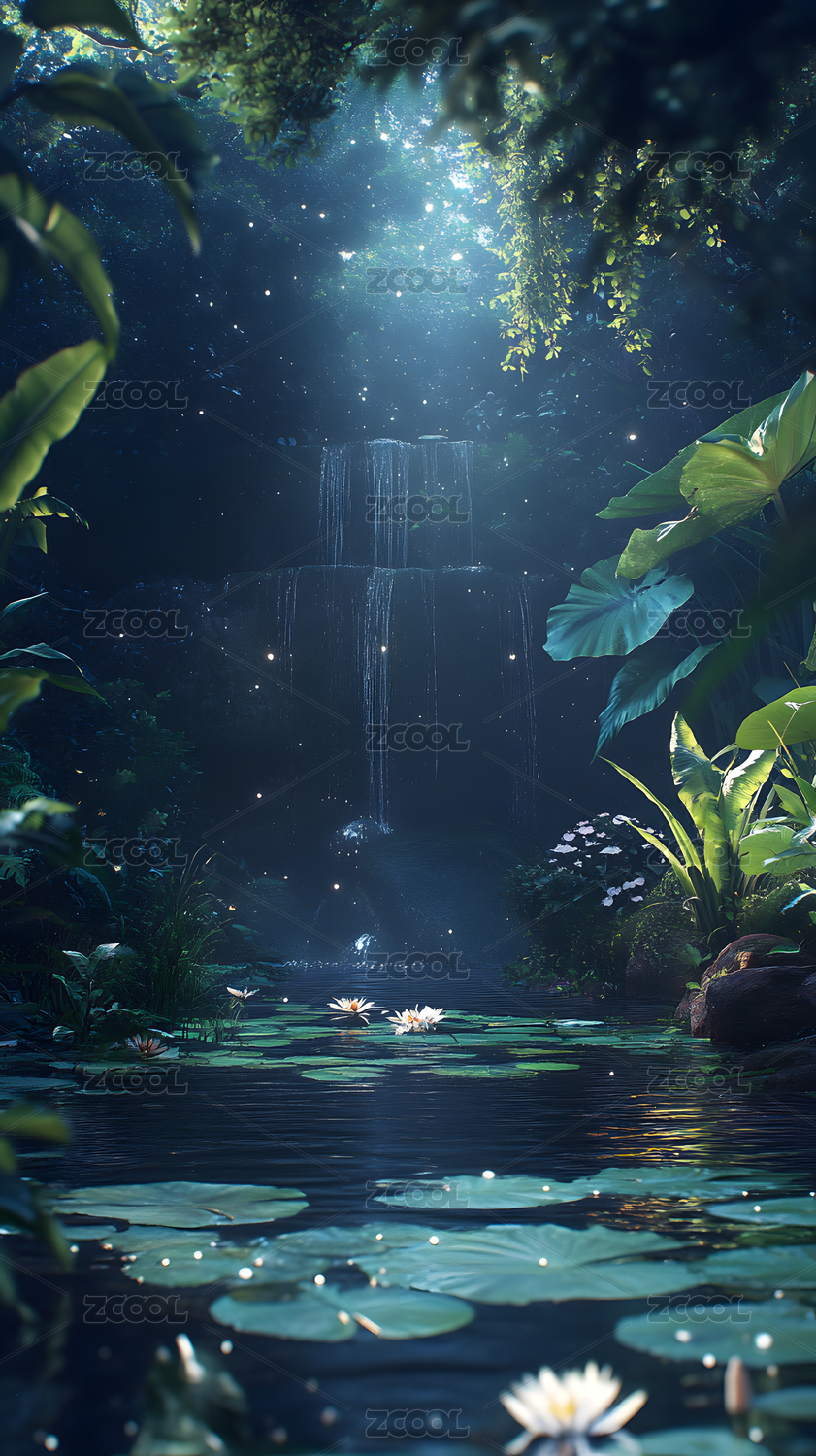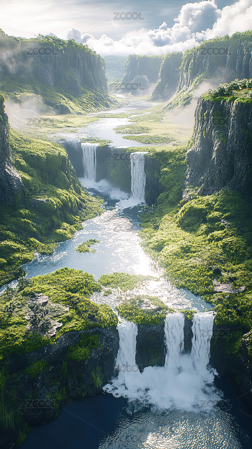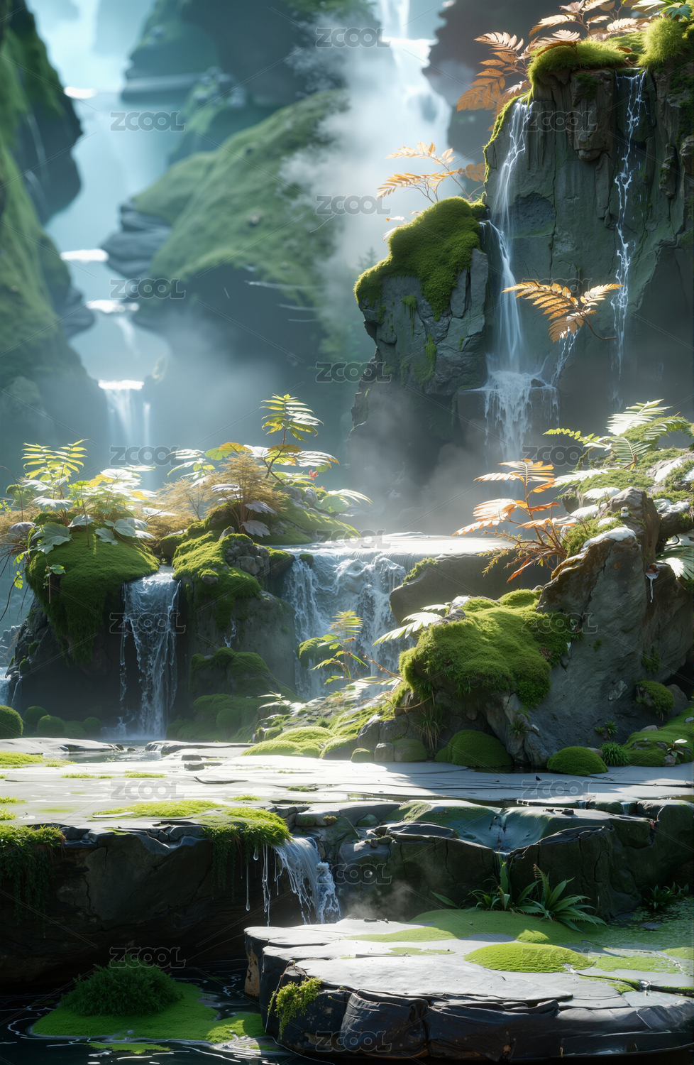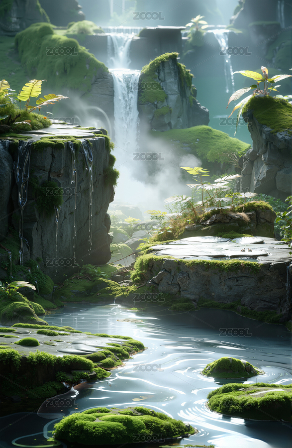 瀑布,苔藓,岩石,流水,溪流,绿植,自然,生态,宁静,祥和