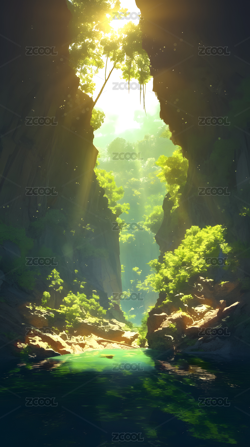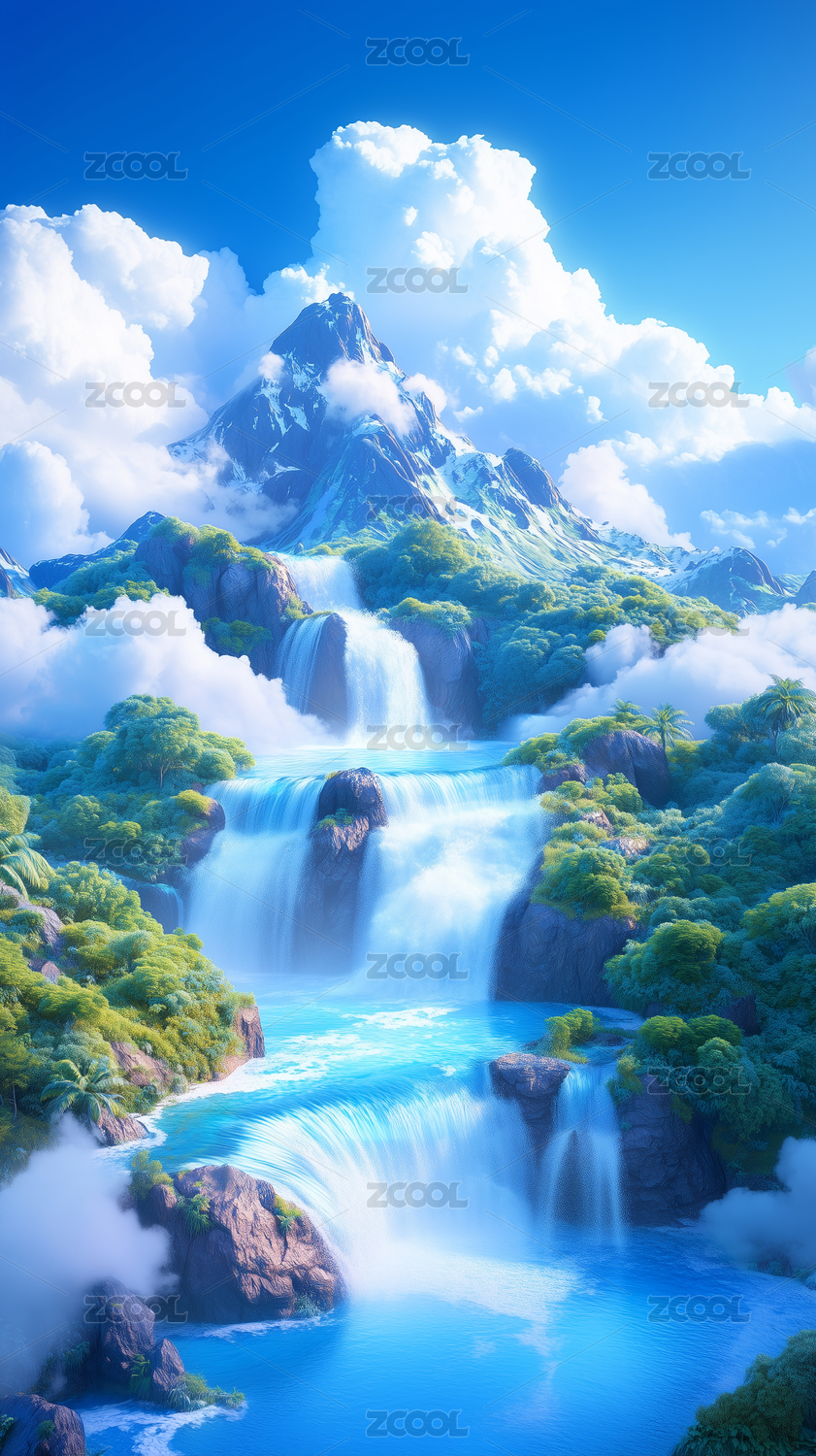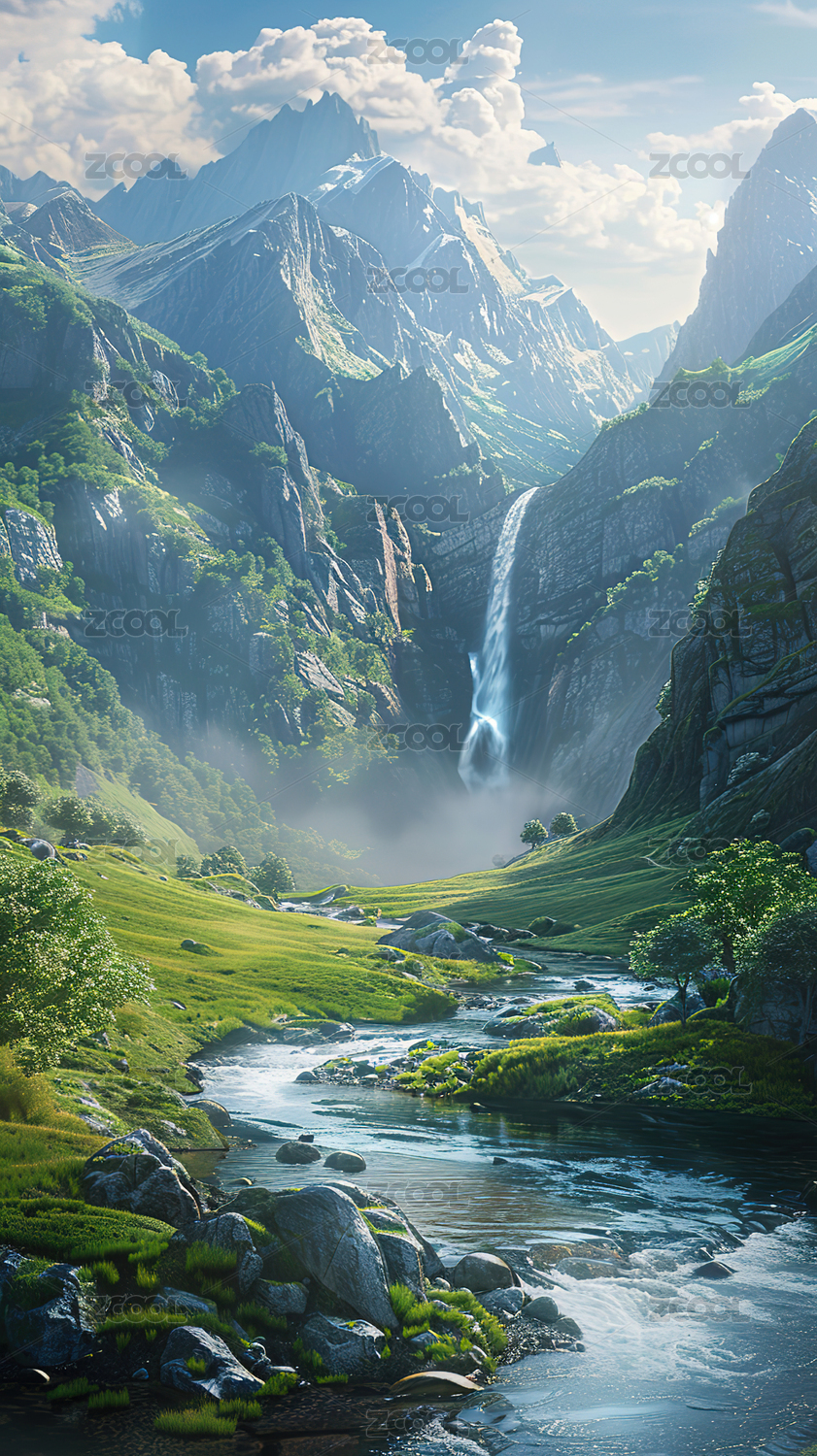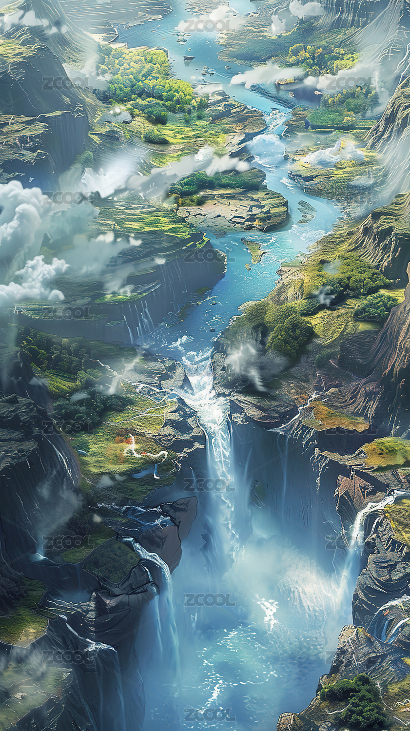 瀑布,苔藓,岩石,流水,溪流,绿植,自然,生态,宁静,祥和