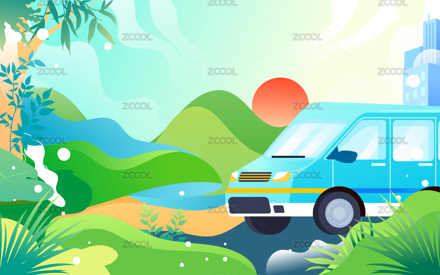 卡通,渐变,扁平,插画,背景,矢量,节日,风景,自然,生活