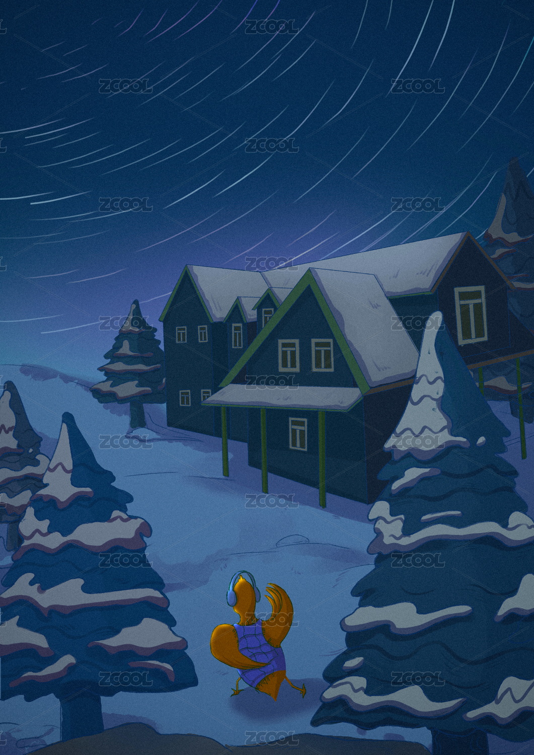立冬森林里雪人替冻僵的小鸟烤火取暖