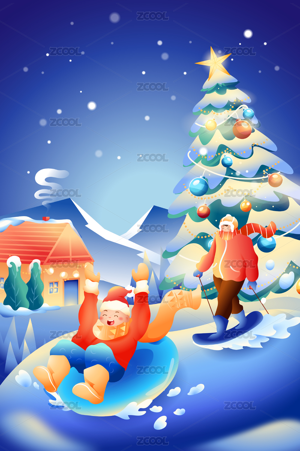 森林里的小河边猫爷爷和小企鹅和小松鼠圣诞