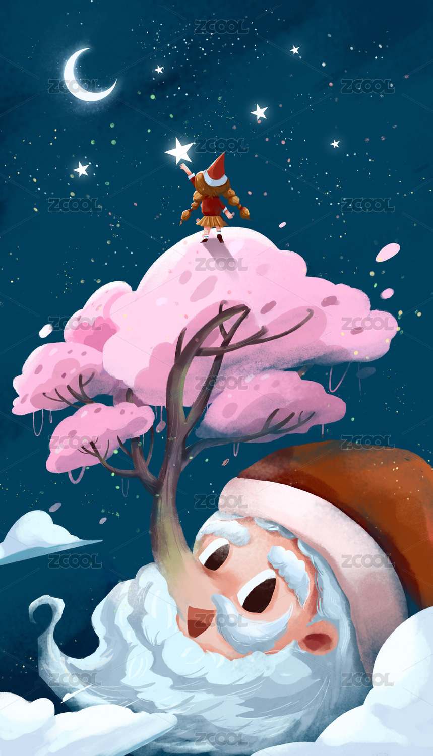 童话,故事,插画,女孩,礼物,神秘,节日,猫,圣诞,星星
