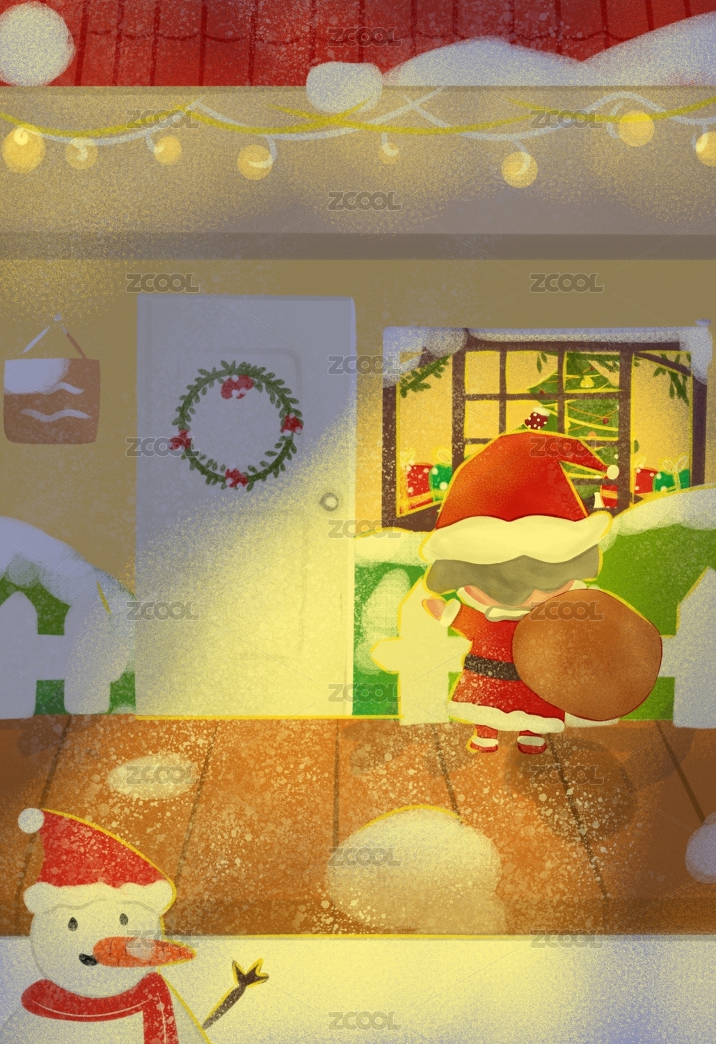 圣诞老人在窗边偷偷观察收到礼物的人们